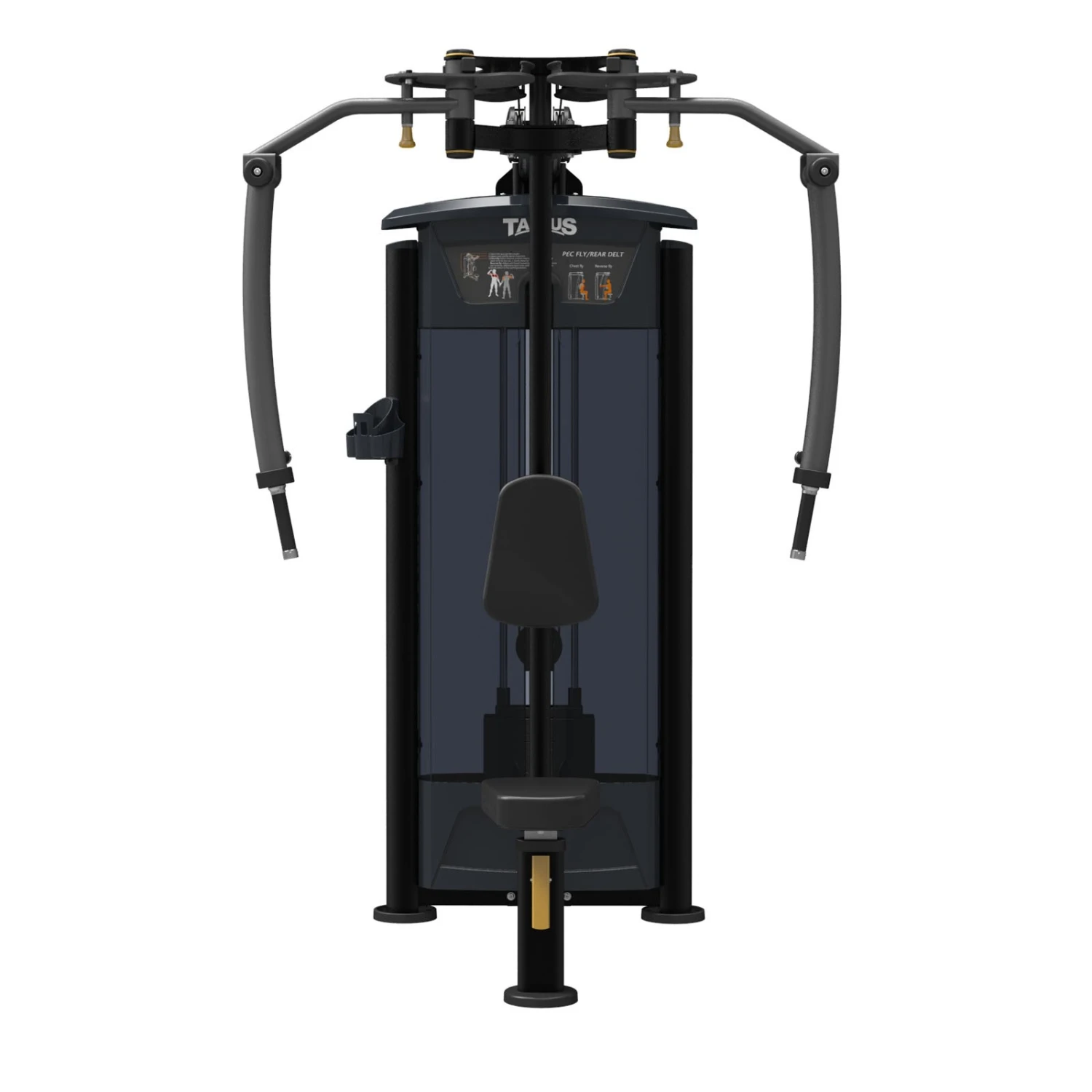 La máquina de Aperturas y Deltoides Taurus IT95 cuenta con brazos móviles y pivotantes que se adaptan automáticamente al largo del brazo del usuario. Es muy fácil colocarse en la posición inicial, y las dos posiciones de ejercicio ofrecen una gran variedad de entrenamientos.