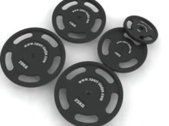 - Incluye pack de 75 kg de discos de pesas de hierro fundido 3G con orificios de agarre de Fitshop, en las siguientes cantidades: