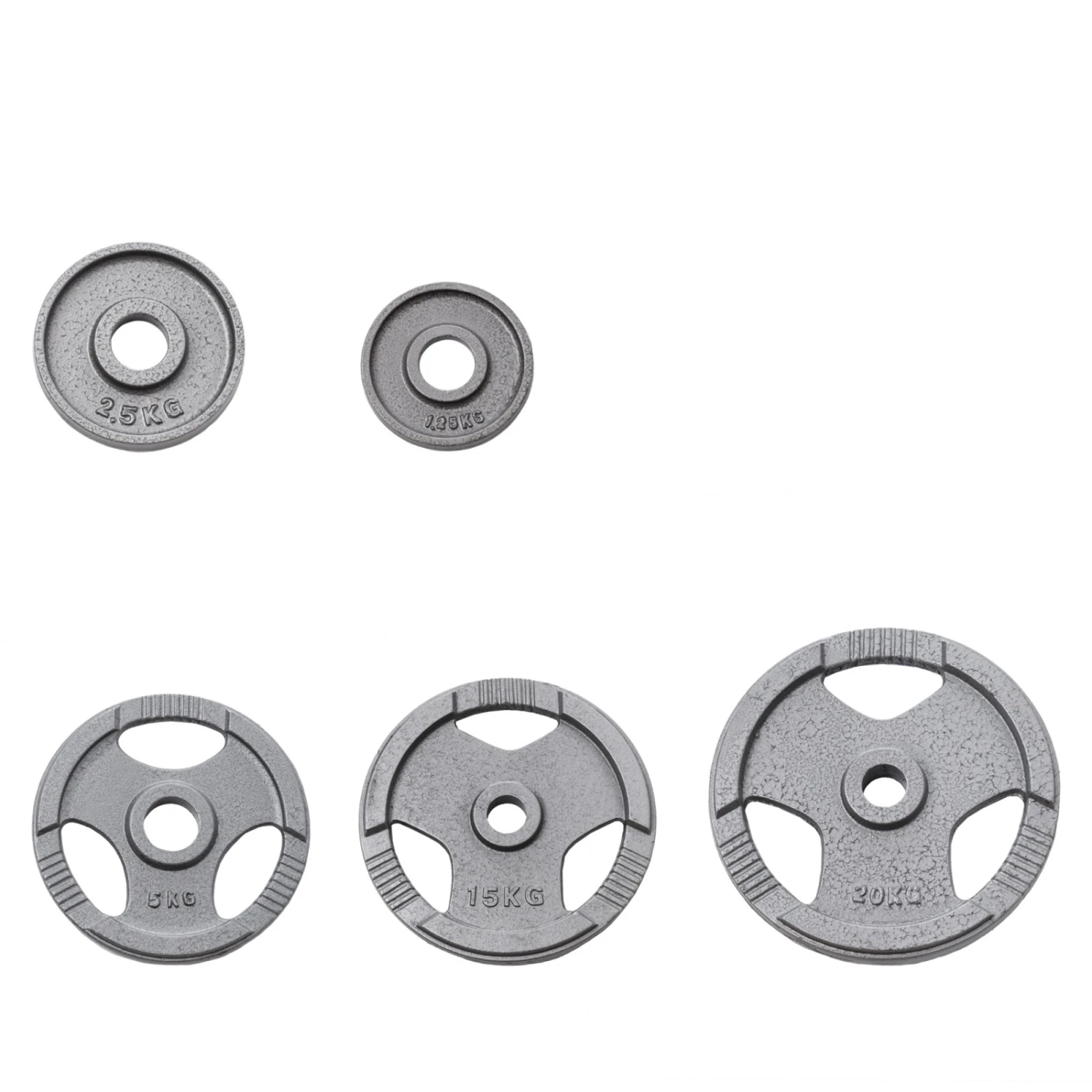 - Discos a partir de 5kg con estructura de agarre para un fácil manejo