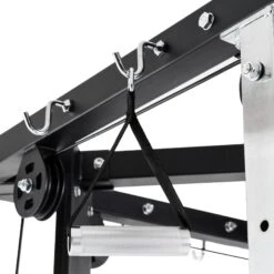 - Estación de gimnasia multifunción con doble polea lateral ajustable en altura, más una polea baja, un Core-Trainer, estación de dominadas y prácticos accesorios