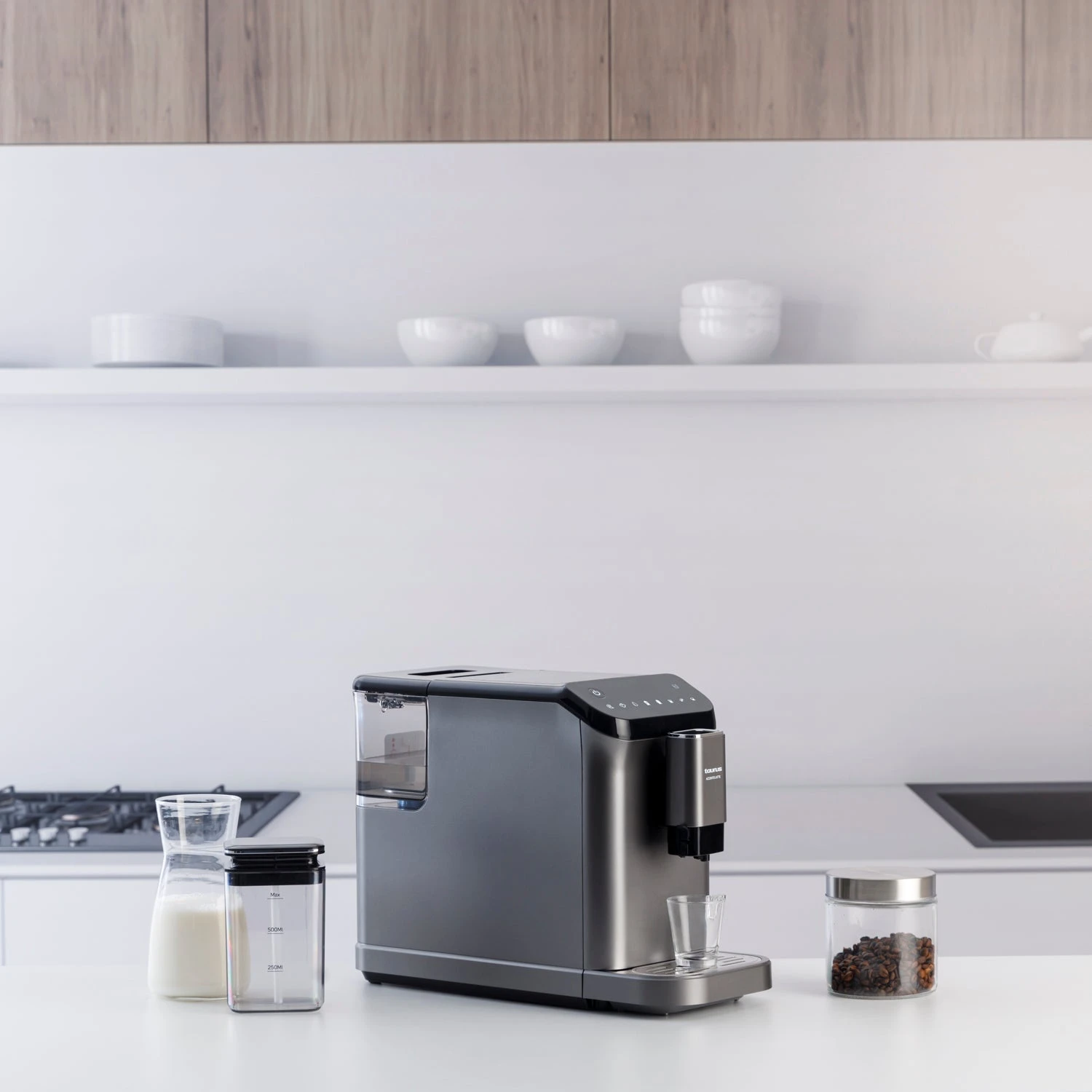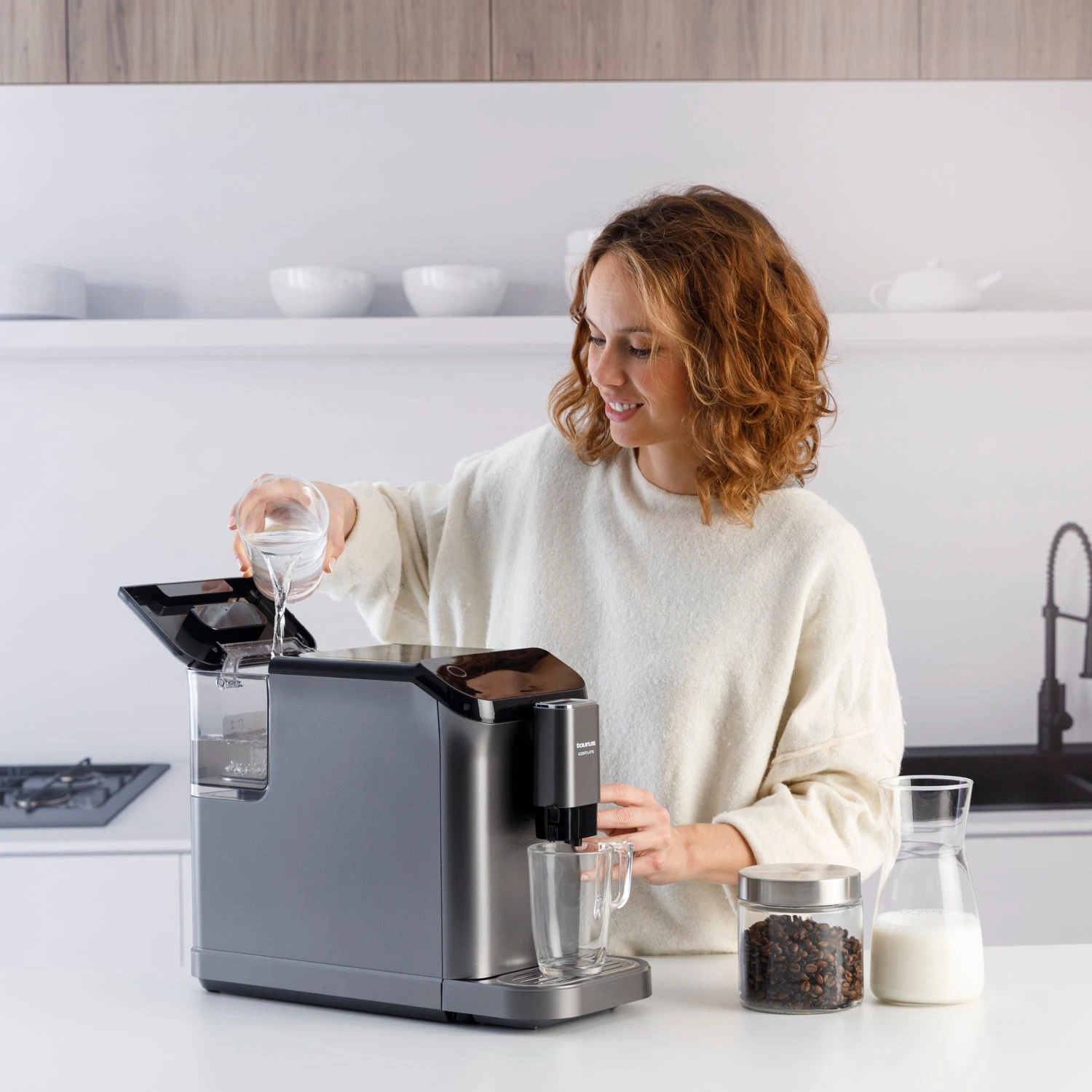 La cafetera superautomática Accento Latte de Taurus combina tecnología Thermoblock, bomba de 20 bares y sistema QuickCoffee para un café perfecto en menos de 1 minuto. Incluye depósito de leche para capuchinos, molinillo ajustable y sistema táctil con 4 bebidas programadas. Su sistema AlwaysClean y piezas extraíbles facilitan el mantenimiento. Con depósito de agua de 1,5L y salida ajustable, es ideal para personalizar cada taza. Disfruta de café recién molido y espumoso con facilidad y rapidez.
