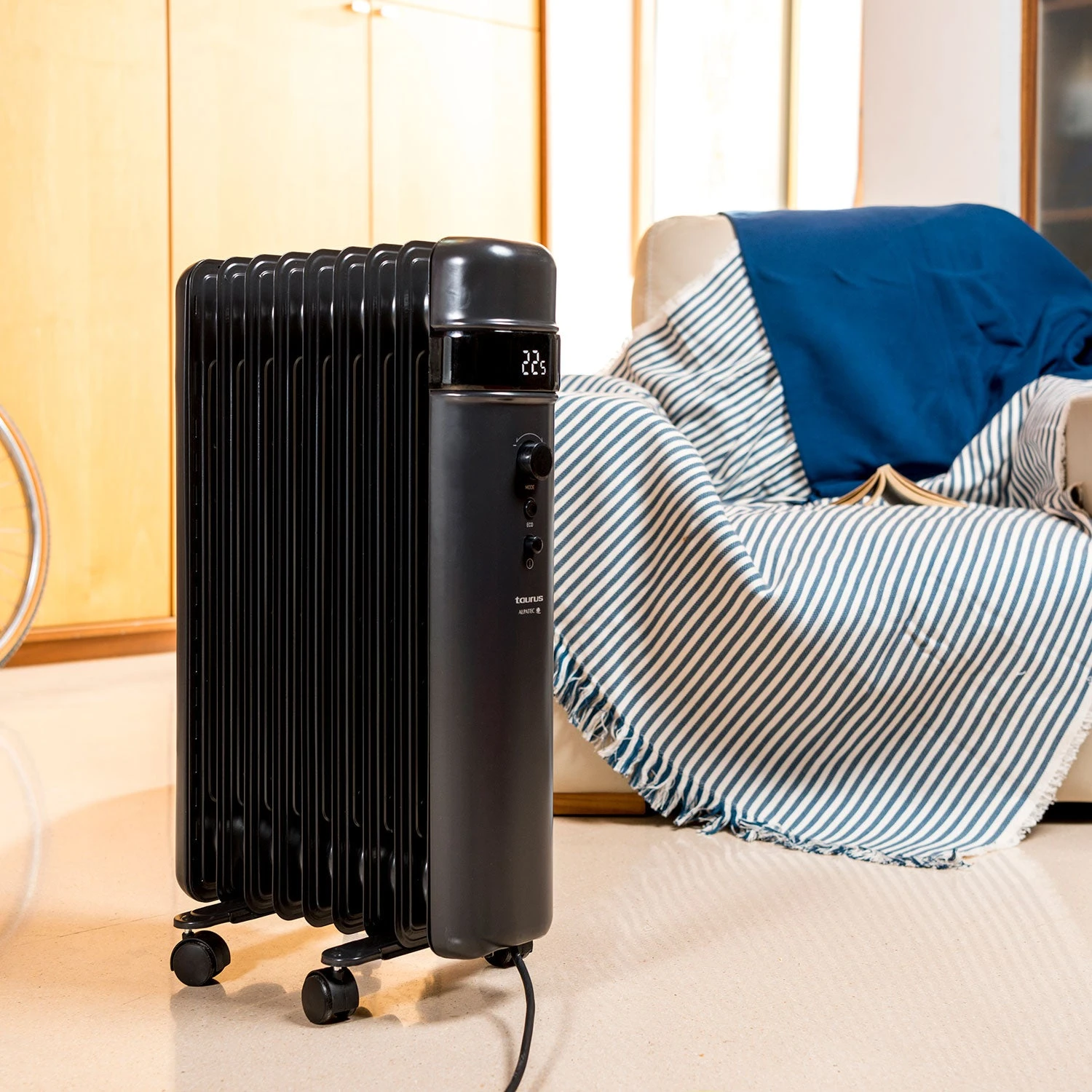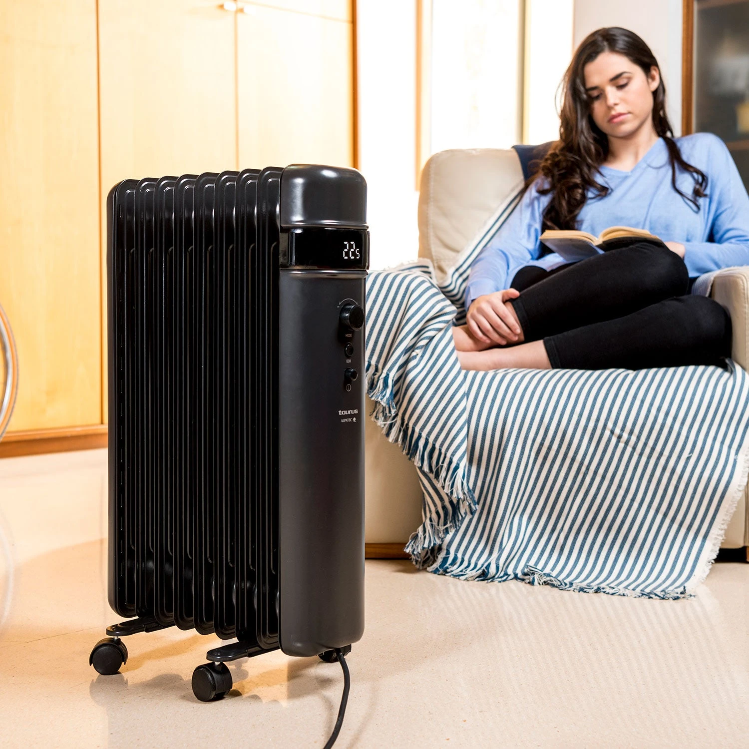Disfruta de la calidez en tu hogar con Agadir, el radiador de aceite programable y con pantalla digital. Programa y elige la temperatura que quieres en tu hogar a través de la pantalla digital de Agadir. Radiador de aceite con tres posiciones de potencia. Funciona con fluido de aceite caliente.