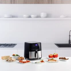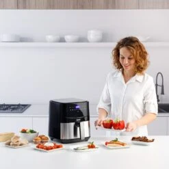Air Fry Digital 5S ofrece 1450W de potencia y 5 litros de capacidad, ideal para cocinar hasta 1200 g de patatas. Con pantalla táctil, 8 programas preestablecidos y temperatura ajustable (80-200ºC), es perfecta para recetas saludables con menos grasa gracias a la tecnología Air System Tech. Su cesta antiadherente, guía de cocinado integrada y piezas libres de BPA y PFOA garantizan un uso seguro y cómodo. Cocina rápido, sano y con resultados crujientes.