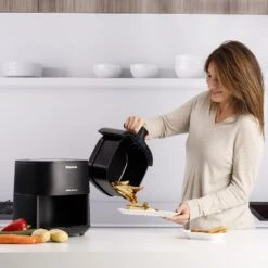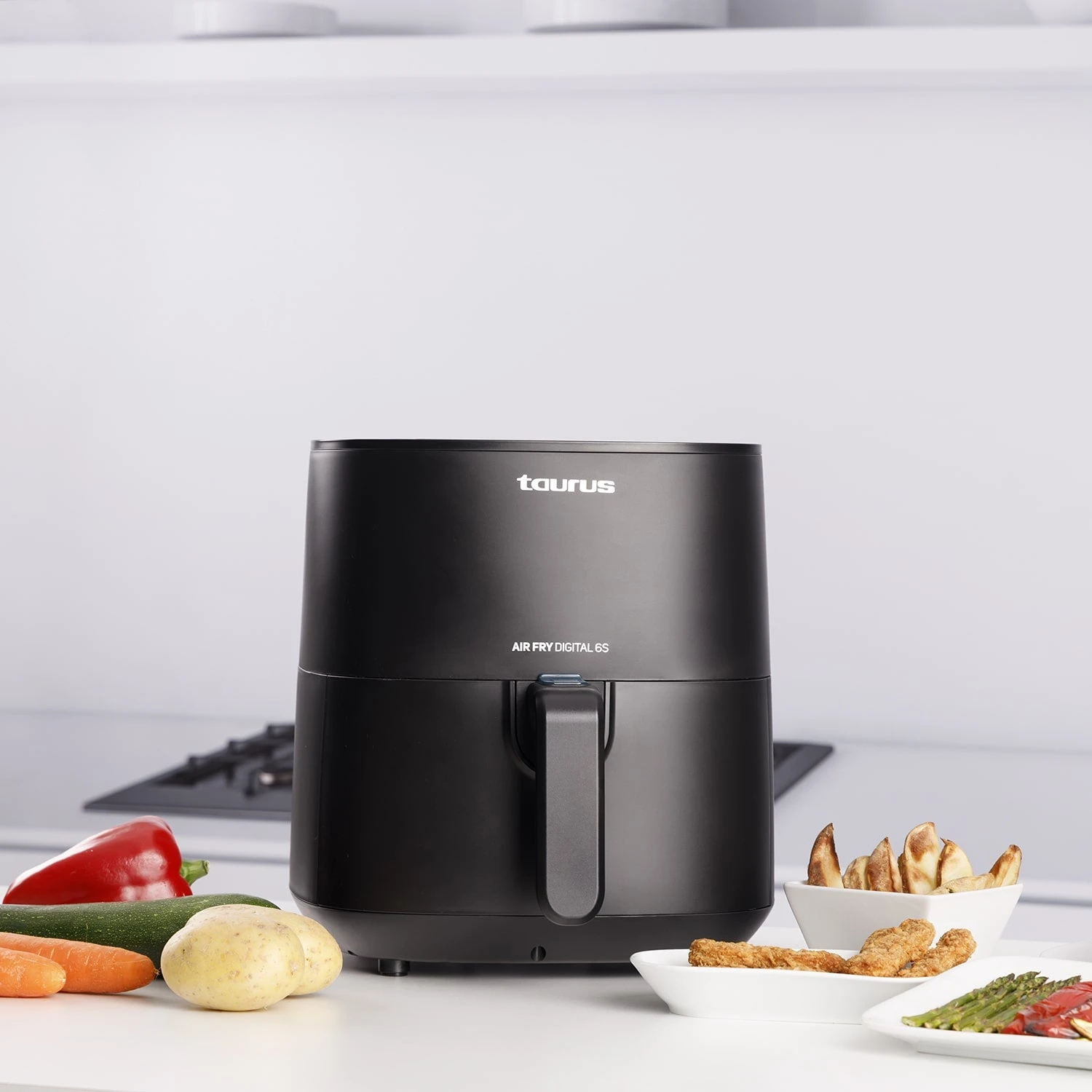 La freidora de aire Air Fry Digital 6S ofrece 1700W de potencia y 5,5 litros de capacidad, ideal para cocinar hasta 1200 g de patatas. Con pantalla táctil, 8 programas automáticos y temperatura regulable (80-200ºC), es perfecta para recetas saludables con menos grasa. Su cesta antiadherente y piezas aptas para lavavajillas facilitan la limpieza. Fabricada con materiales libres de BPA y PFOA, incluye protección contra sobrecalentamiento para un uso seguro. Cocina rápido, fácil y sin complicaciones.