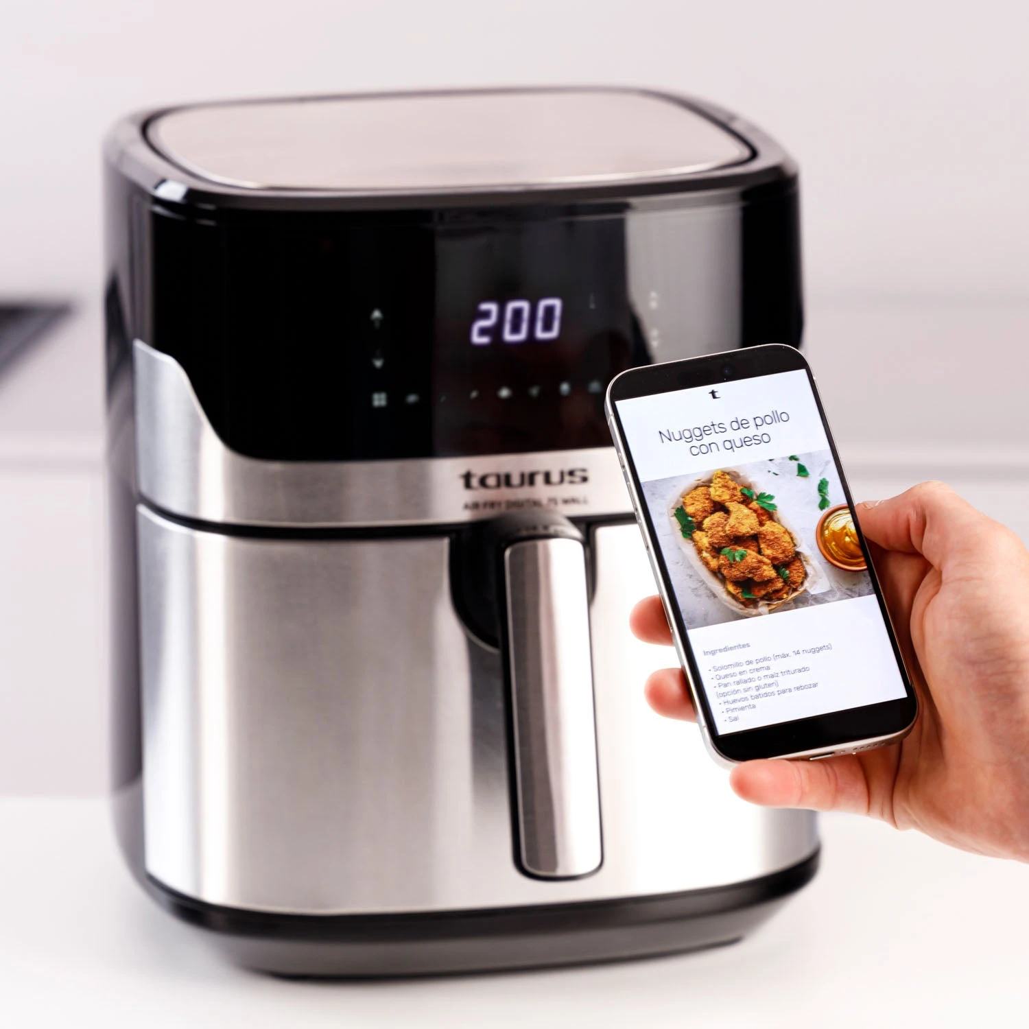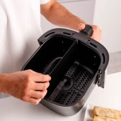 Fríe con aire caliente reduciendo el uso de aceite en un 99% con la freidora de aire Air Fry Digital 7S Wall. Incluye el accesorio Wall, un cómodo accesorio extraíble metálico que se coloca en el medio de la cubeta, dividiéndola en dos partes iguales para que puedas cocinar dos recetas a la vez sin mezclar los sabores. Incluye 8 programas predefinidos para cocinar solo presionando un botón. Su diseño cuadrado permite optimizar el espacio, con una capacidad total de 6,5L.