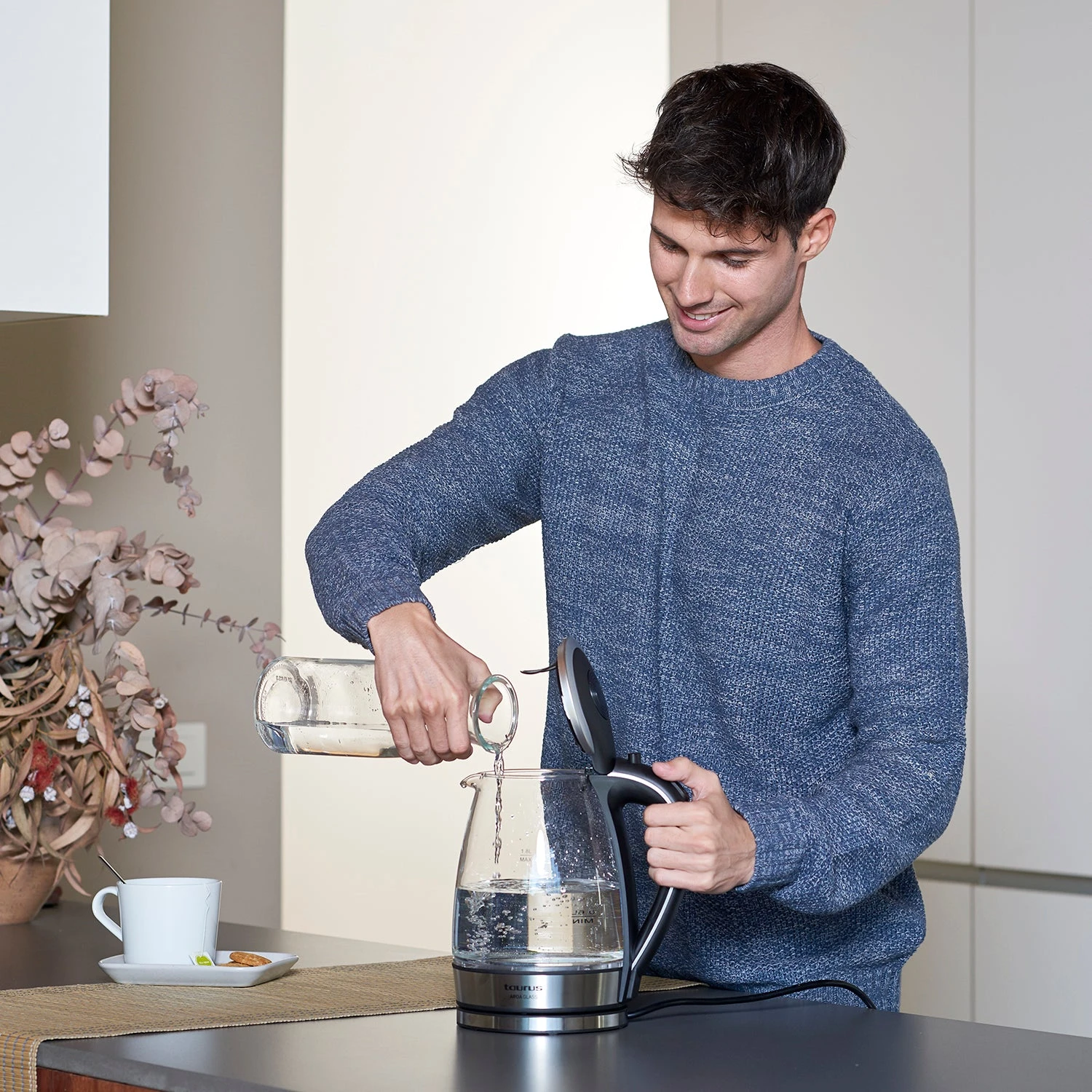 Hierve líquidos y prepara infusiones con el hervidor eléctrico Aroa Glass de Taurus. Gracias a sus 2200W de potencia podrás hervir hasta 1,8 litros de agua en pocos minutos. Con un hervidor en casa aprovecharás el tiempo tanto para cocinar como para preparar tés. Además, la jarra tiene giro 360º para garantir un uso sencillo tanto para diestros como para zurdos.