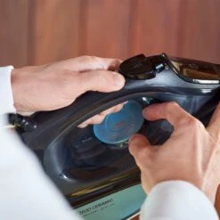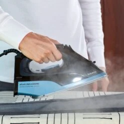 Esta plancha de 2600 W ofrece un golpe de vapor de 170 g/min y vapor continuo de 40 g/min, eliminando arrugas con rapidez. Su suela de cerámica con punta de precisión proporciona un deslizamiento fluido y facilita el acceso a zonas complicadas. Con planchado vertical, función spray y vapor higienizante, es ideal para un acabado perfecto. Además, cuenta con doble sistema antical, antigoteo, autolimpieza y luz de calentamiento, garantizando durabilidad y eficiencia.