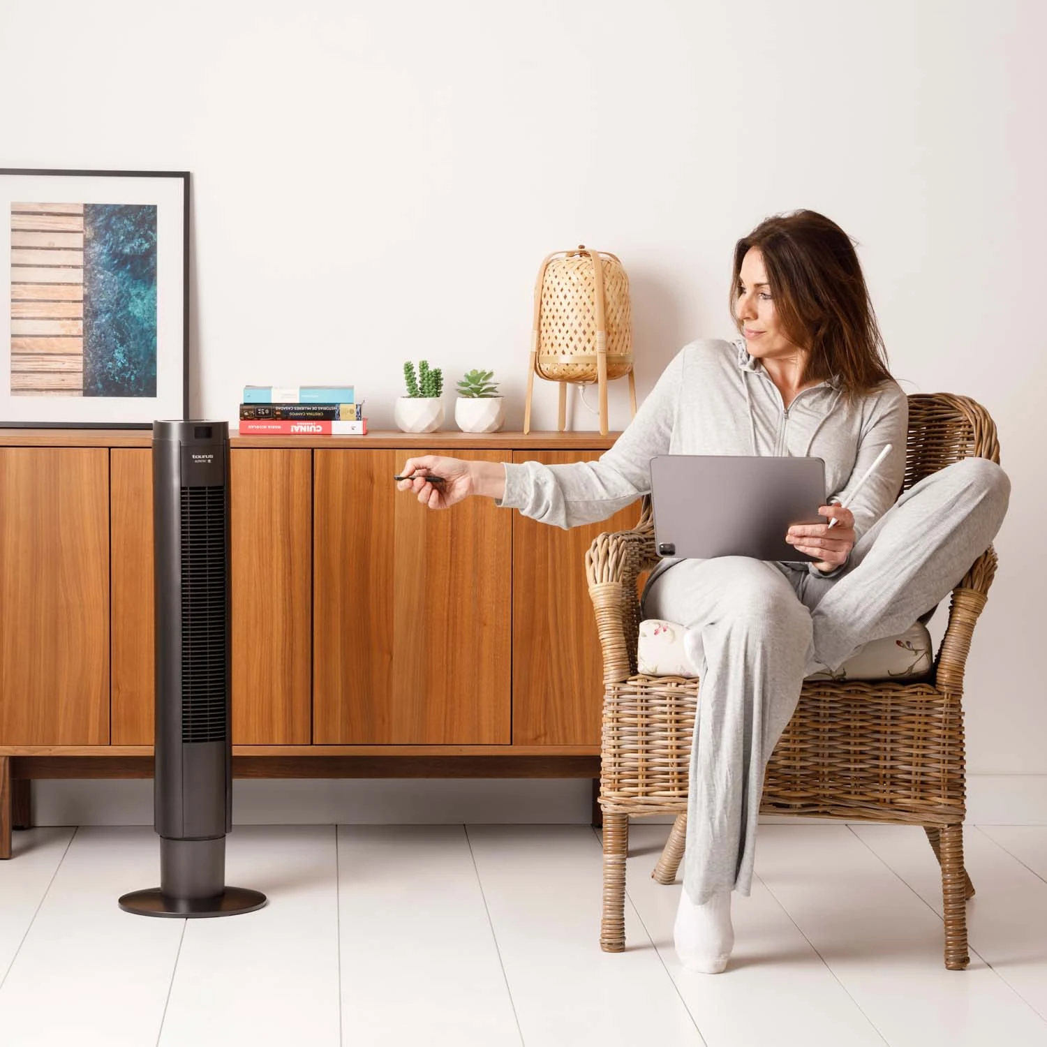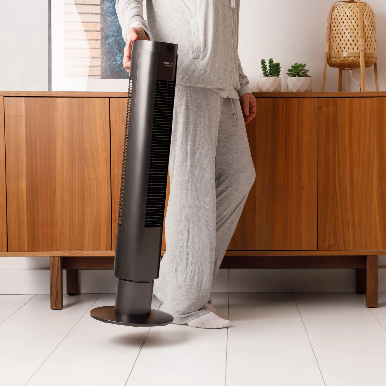El ventilador Taurus BABEL II RCH es un modelo con una potencia de 50 W. Se maneja con una gran facilidad, al incluir un mando a distancia que permite controlar todas sus funciones desde cualquier parte de la estancia. Además, su temporizador con apagado automático de hasta 7,5 horas te evitará la tarea de apagarlo manualmente.