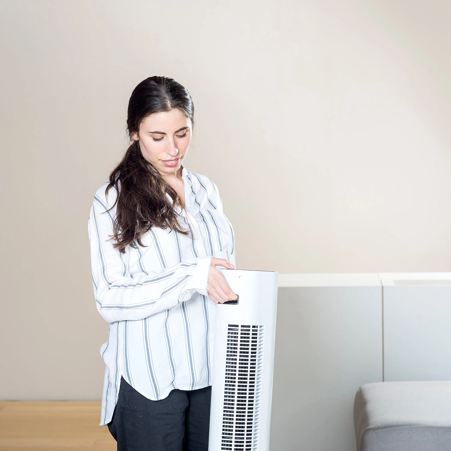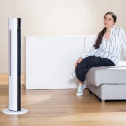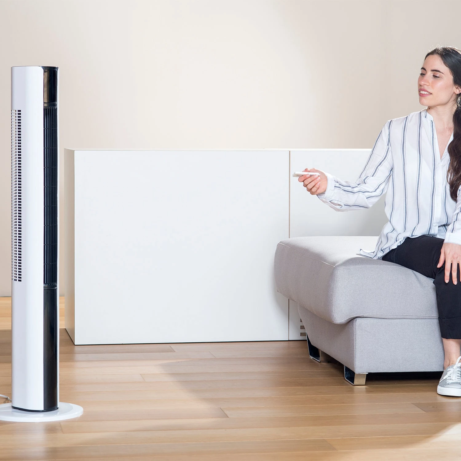 Ventilador de torre extra alto con 110 cm de altura. Potente y silencioso con control remoto y mando a distancia. Cuenta con 3 modos de funcionamiento y mando a distancia. Con el modo noche disfrutarás de su maximo silencio.