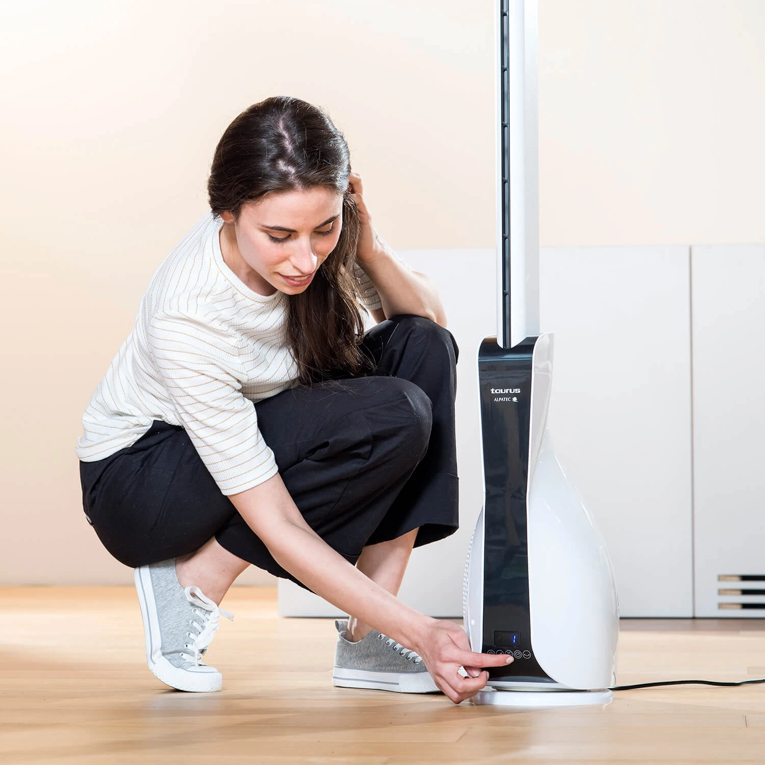 Ventilador de torre potente y muy silencioso con control remoto y pantalla digital con indicador de temperatura. Su motor DC 100% de cobre consigue que este ventilador sea mucho más eficiente, duradero y silencioso. Con tan solo 30W tiene una gran potencia repartida en 12 velocidades y 3 modos de funcionamiento.