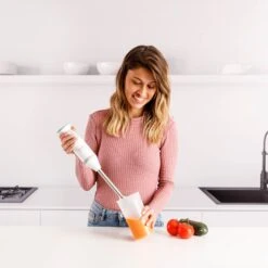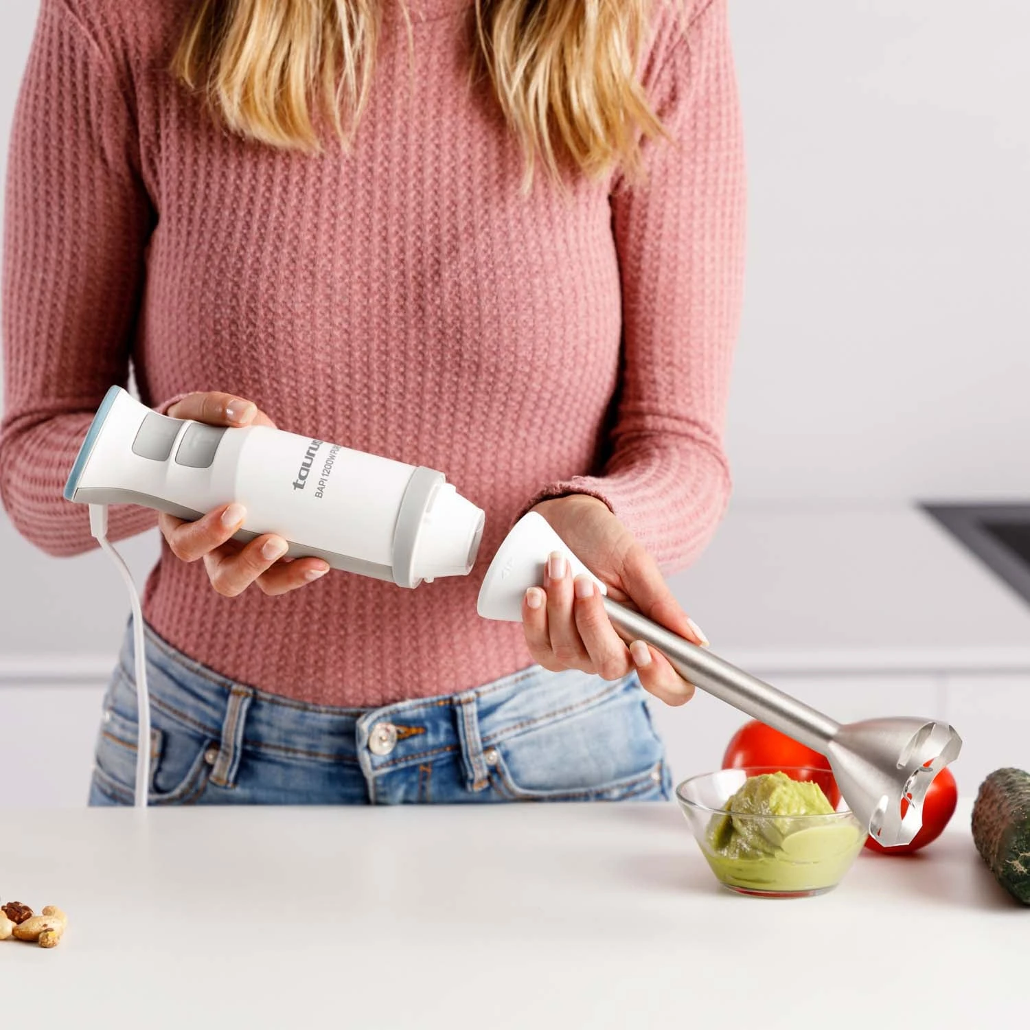 La batidora de mano BAPI 1200 Pure de Taurus ofrece 1200W de potencia, regulador de 20 velocidades y función Turbo para adaptarse a cualquier preparación. Con Turbo Rotation System y cuchillas de acero inoxidable, pica hielo y mezcla alimentos con precisión. Su diseño ergonómico con agarre soft-touch y campana antisalpicaduras garantiza comodidad y limpieza. Incluye un vaso medidor graduado de 700 ml y accesorios aptos para lavavajillas, ofreciendo facilidad de uso y mantenimiento. Ideal para quienes buscan calidad y versatilidad en la cocina.