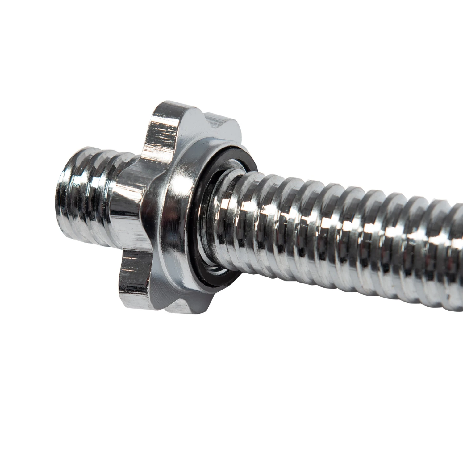 La Barra de Pesas con una longitud de 200cm es especialmente resistente y tiene un cierre de rosca.