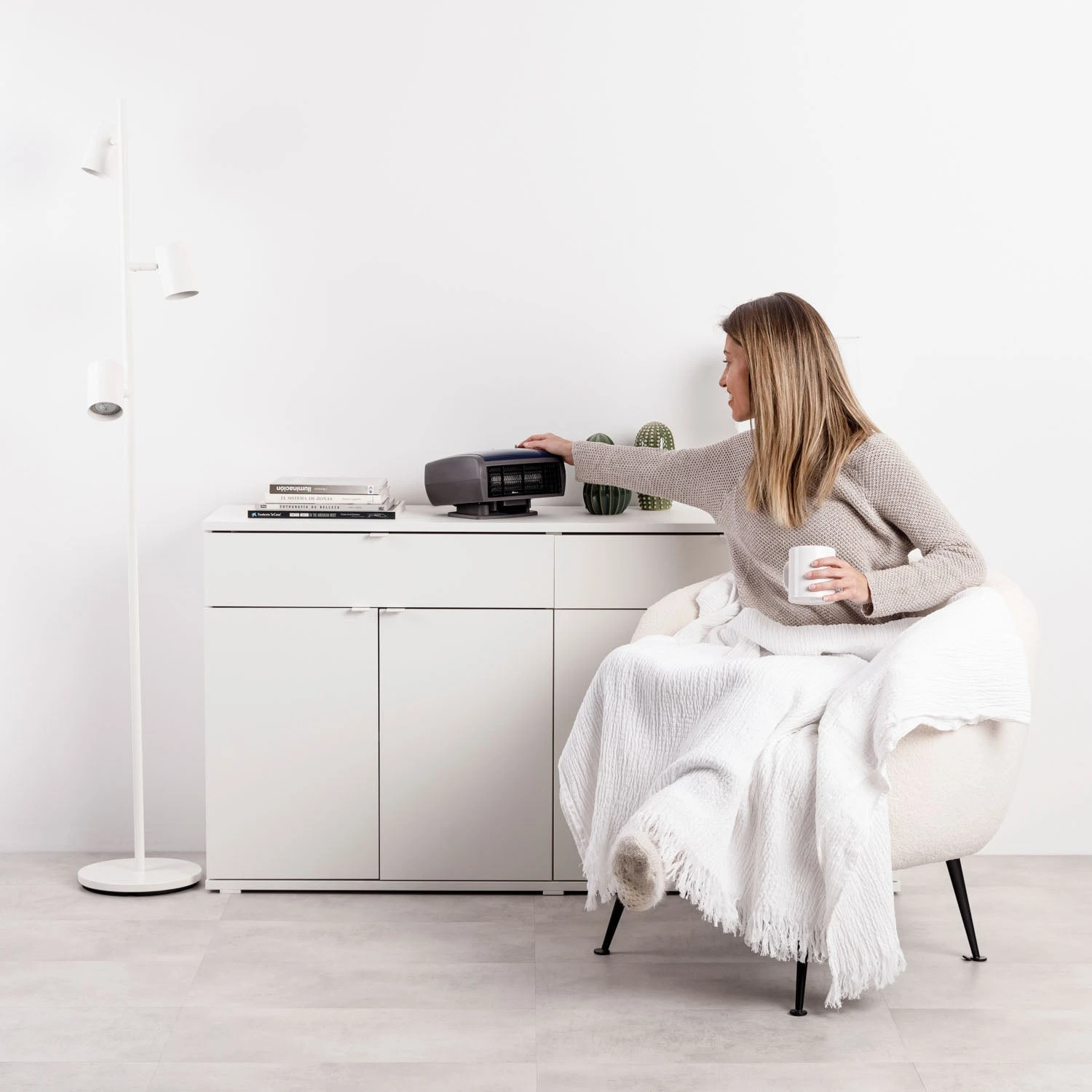 CA-2002 tiene 3 posiciones de climatización, 2 para calor, y 1 para frío. Su termostato es regulable e incluye un práctico alojamiento para el cable.