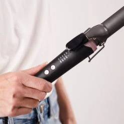 El rizador de pelo Curly 25 Ceramic de Taurus crea ondas definidas y naturales con su tenacilla de 25 mm y recubrimiento cerámico, que reduce el frizz y protege el cabello del calor. Con 5 niveles de temperatura hasta 200 °C, se adapta a todo tipo de cabello. Su diseño ergonómico incluye pinza sujetadora, punta de toque frío, cable giratorio y apagado automático. Además, su voltaje universal lo hace ideal para viajar.