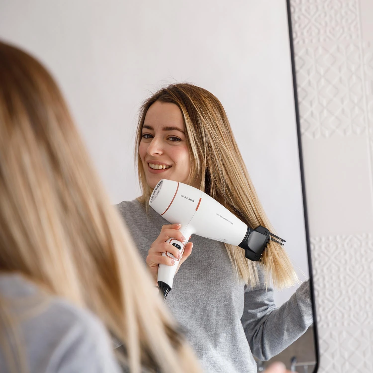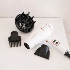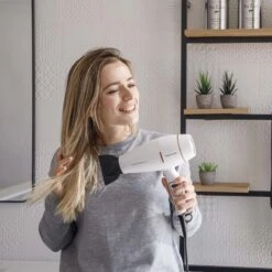 El secador de pelo de 2200W con motor digital y tecnología iónica ofrece un caudal de aire de +160 km/h para un secado rápido y sin encrespamiento. Incluye 2 velocidades, 3 temperaturas, golpe de aire frío y protección contra el sobrecalentamiento. Su diseño práctico cuenta con filtro extraíble, anilla para colgar y un cable de 2 m, asegurando comodidad y facilidad de uso. Perfecto para lograr un acabado profesional mientras cuidas tu cabello.