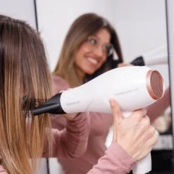 El secador de pelo profesional de 2600W con motor AC combina potencia y durabilidad para un secado rápido y eficiente. Su tecnología iónica reduce el encrespamiento, dejando el cabello suave y brillante. Con 3 temperaturas, 2 velocidades y botón de aire frío, se adapta a cualquier estilo. Incluye accesorios como 2 concentradores y un difusor para resultados profesionales. Su diseño práctico, con filtro extraíble y anilla para colgar, lo hace fácil de usar y mantener.
