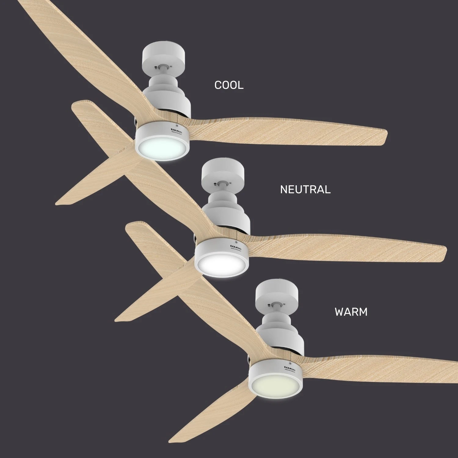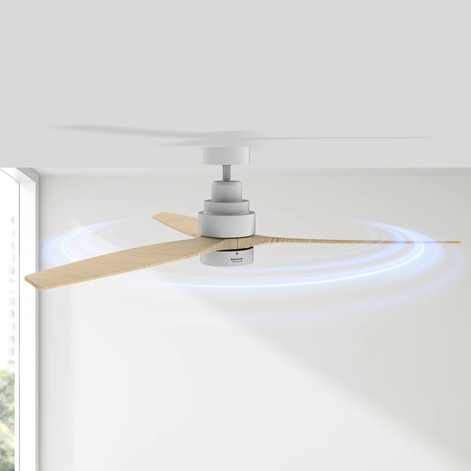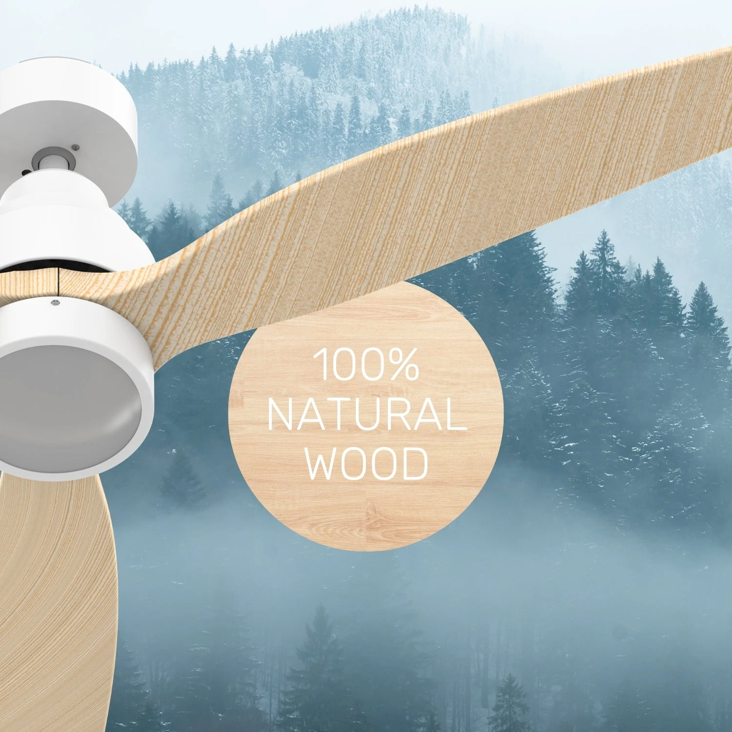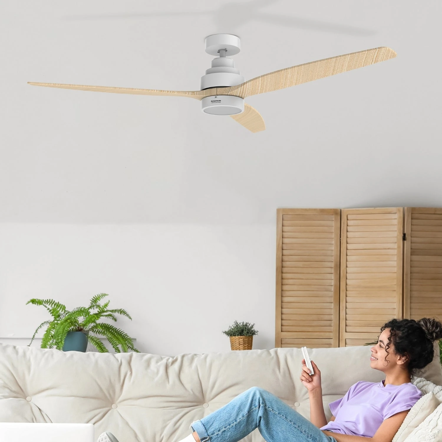 Este ventilador de techo ultrasilencioso con motor DC de 30W y aspas de madera de 132 cm ofrece una ventilación eficiente y elegante. Su luz LED de 24W regulable permite elegir entre tres temperaturas de color, con memoria de luz. Con modo invierno-verano, 6 velocidades, mando a distancia y temporizador de hasta 8 horas, proporciona confort y ahorro energético durante todo el año.