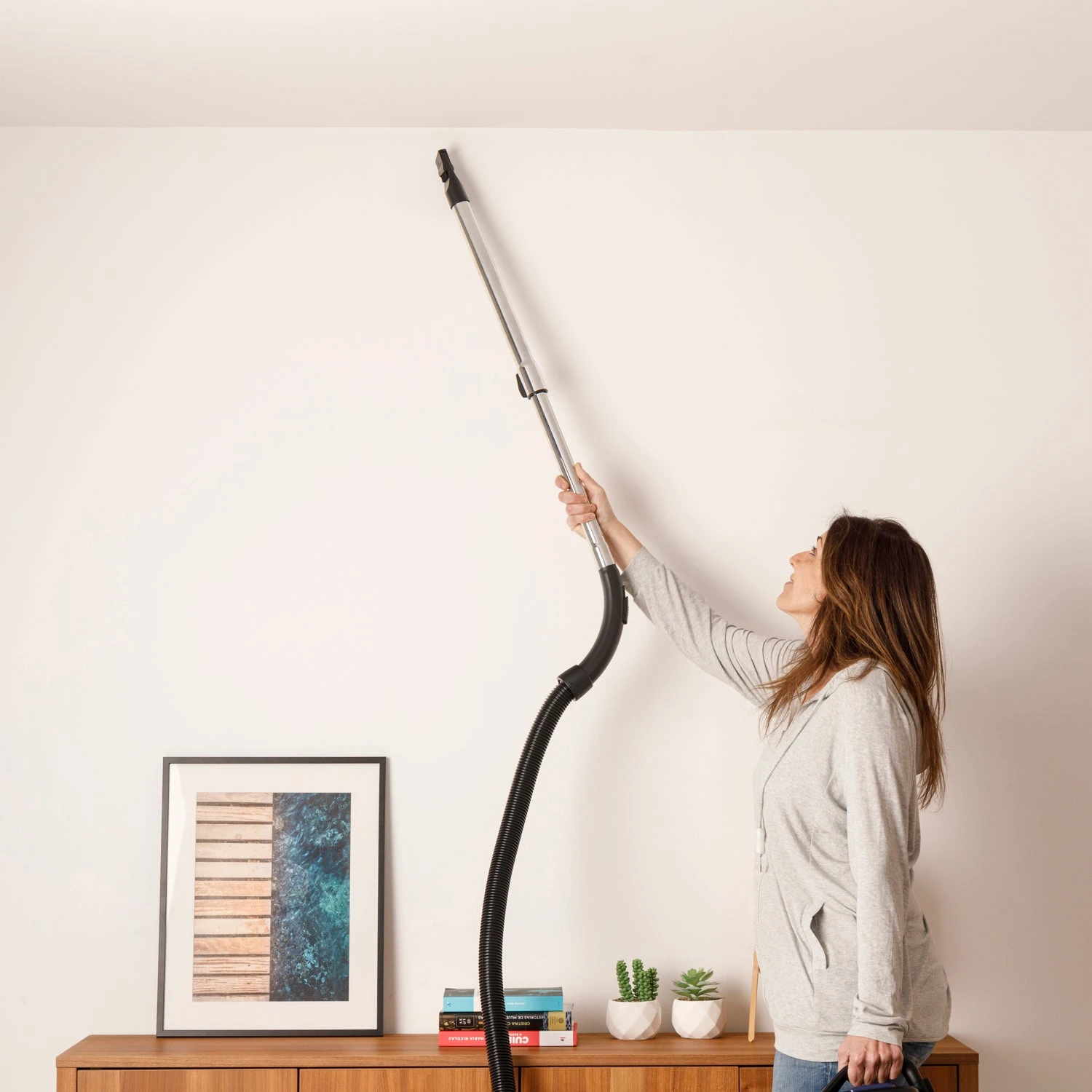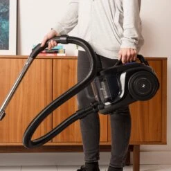 Este aspirador de 850 W y 16 kPa de succión ofrece una limpieza potente y eficaz. Con doble sistema de filtración (HEPA 12 + triple filtrado ciclónico) y filtros lavables, mantiene el aire más limpio. Su zapata Dual Pro Air es apta para todo tipo de superficies, mientras que su depósito de 2 L, tubo telescópico metálico y radio de acción de 8.3 m garantizan máxima comodidad. Además, cuenta con ruedas con perfil de goma, posición parking y recoge cables automático.