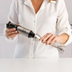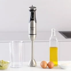 La batidora de mano HB1700X de Taurus combina 1700W de potencia, regulador de velocidades progresivo y función Turbo para adaptarse a cualquier receta. Equipada con 4 cuchillas de acero inoxidable, sistema antisalpicaduras y diseño ergonómico, es ideal para batir y triturar con precisión. Su varilla desmontable y el vaso medidor de 1L facilitan la limpieza y el manejo. Fabricada con materiales libres de BPA, es perfecta para preparar batidos, cremas y mezclas de manera eficiente y segura.