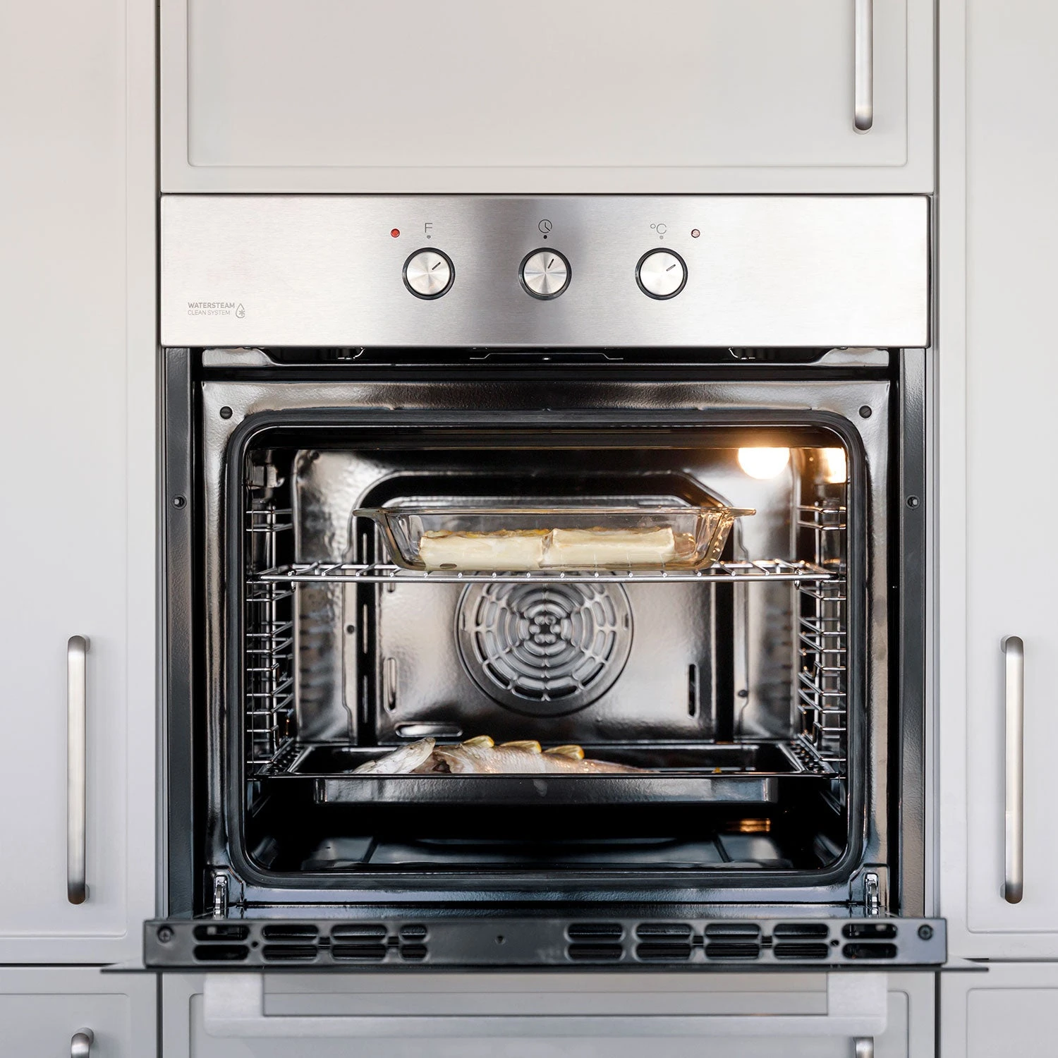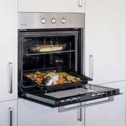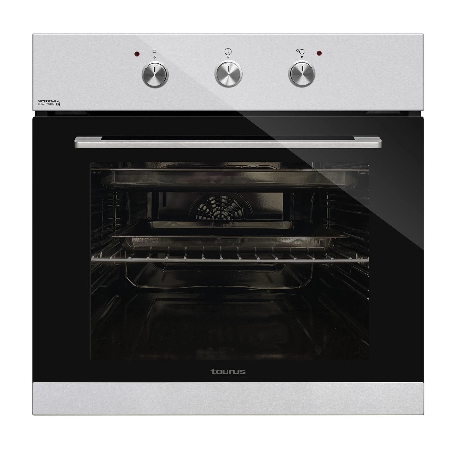 Hornea, asa, gratina y cocina tus platos preferidos con el horno multifuncional HM669IXM, de Taurus. Horno encastrable con 2300W de potencia total y de 69L de capacidad, que cuenta con 8 funciones, concretamente 6 de cocción (cocción tradicional, cocción tradicional con convector, cocción grill, cocción supergrill, cocción resistencia solera y descongelación), luz interior y sistema de limpieza. La temperatura del horno asciende hasta 270ºC. También cuenta con ventilador y temporizador de 100 minutos. Ofrece un sistema de limpieza WaterSteam que con vapor desincrustará y limpiará los trozos de comida que queden en su interior. Además, para facilitarte aún más la limpieza, la puerta y el cristal de la puerta son desmontables. Los mandos son escamoteables metálicos de uso sencillo e intuitivo. Incorpora como accesorios: una bandeja profunda y una parrilla.