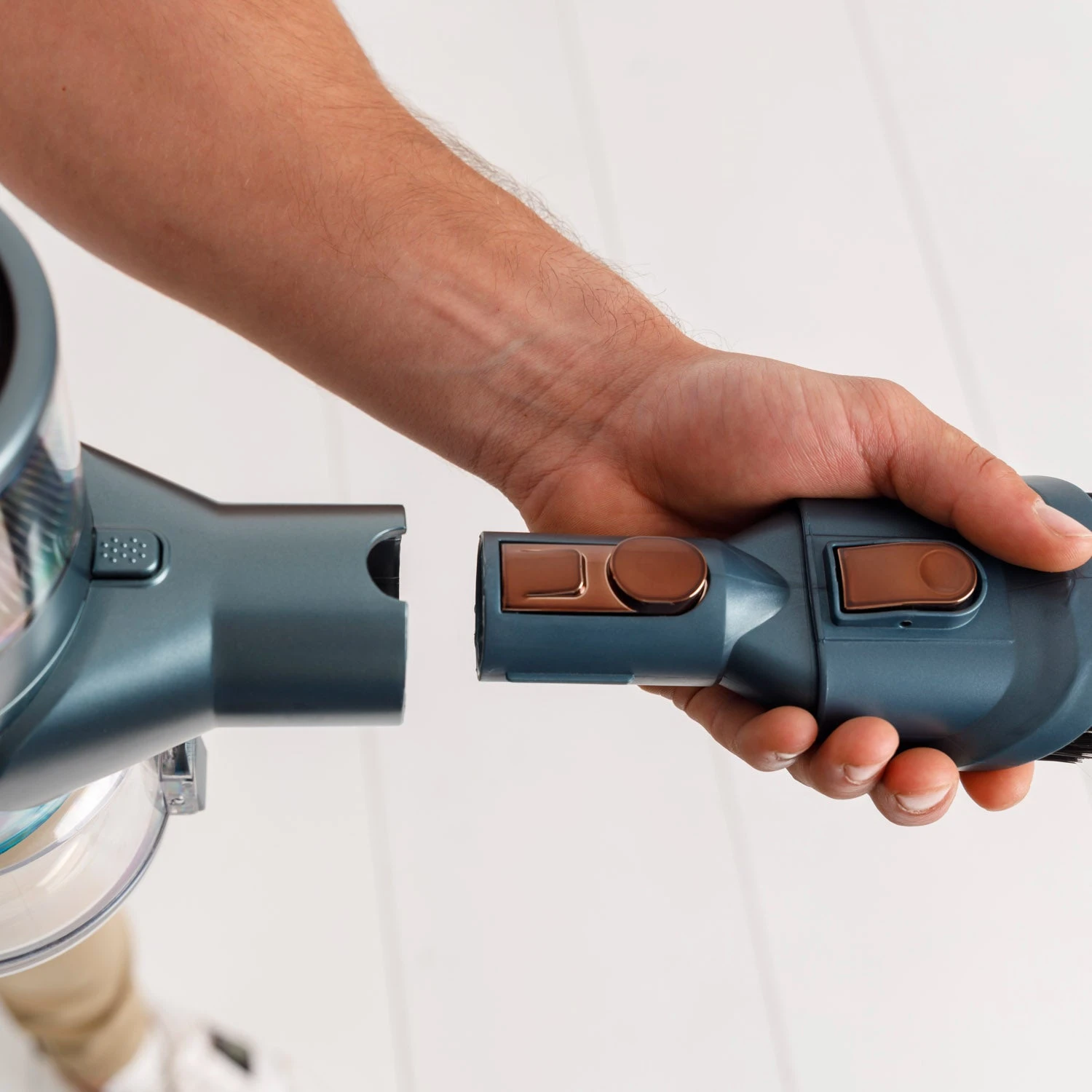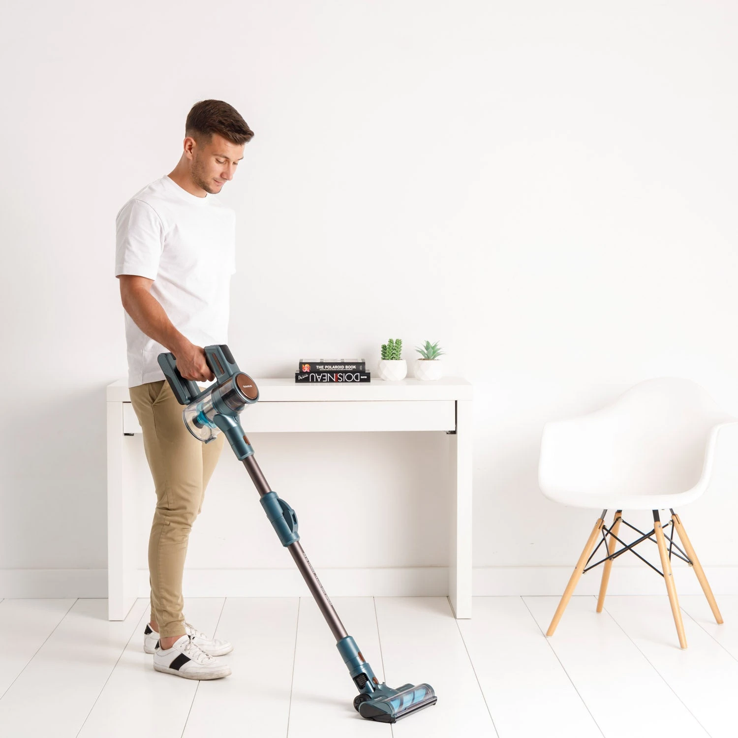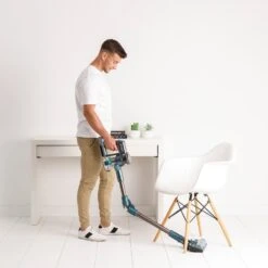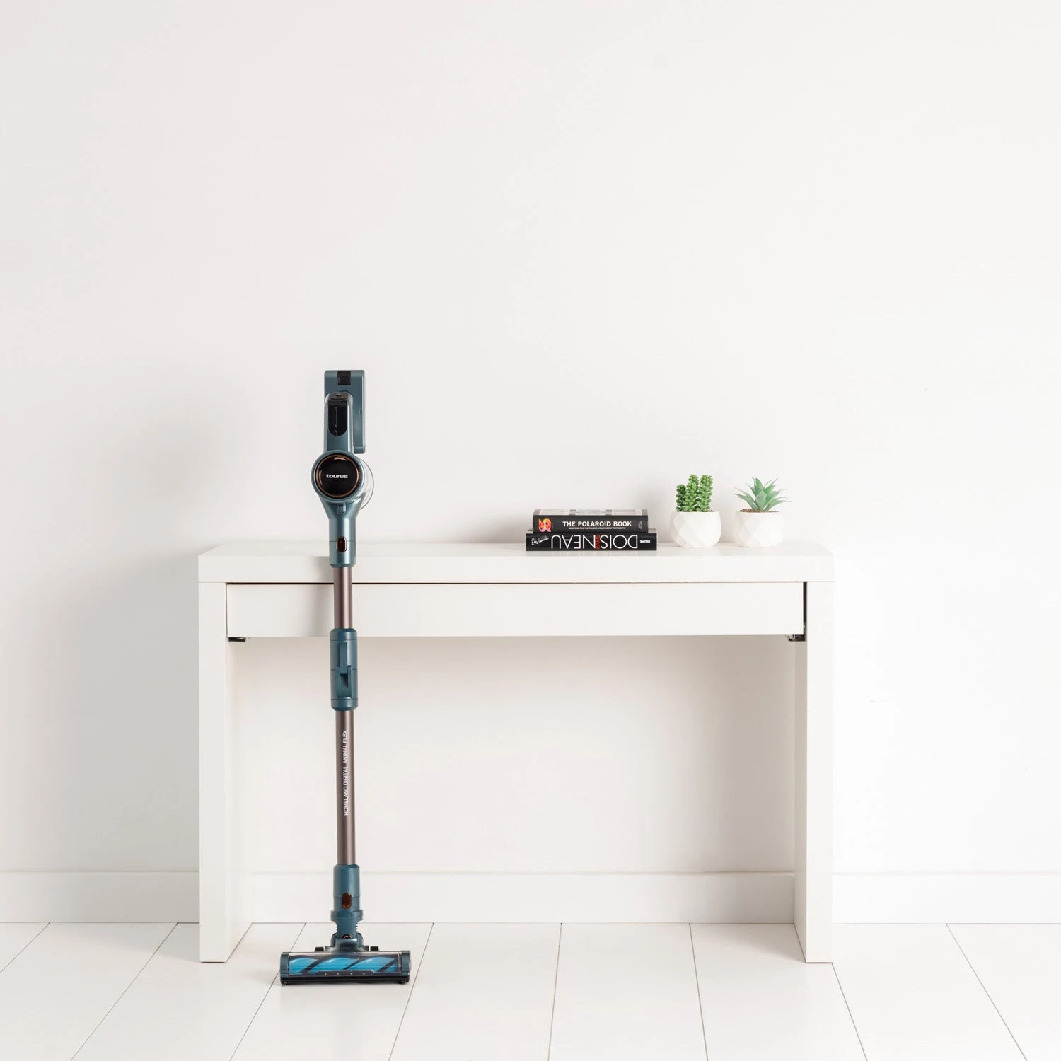 El aspirador escoba Homeland Digital Animal Flex de Taurus combina un motor Digital Brushless de 415W con 30.000 Pa de succión y batería de litio extraíble de 60 minutos de autonomía. Incluye zapata motorizada All Road y zapata especial para el pelo de mascotas, Triple Advanced Filtration y depósito de 500 ml fácil de vaciar. Su diseño TOTAL Flex 180º, iluminación LED y posición parking lo hacen práctico y versátil para cualquier superficie. Ideal para limpiezas eficientes y almacenamiento compacto en el hogar.