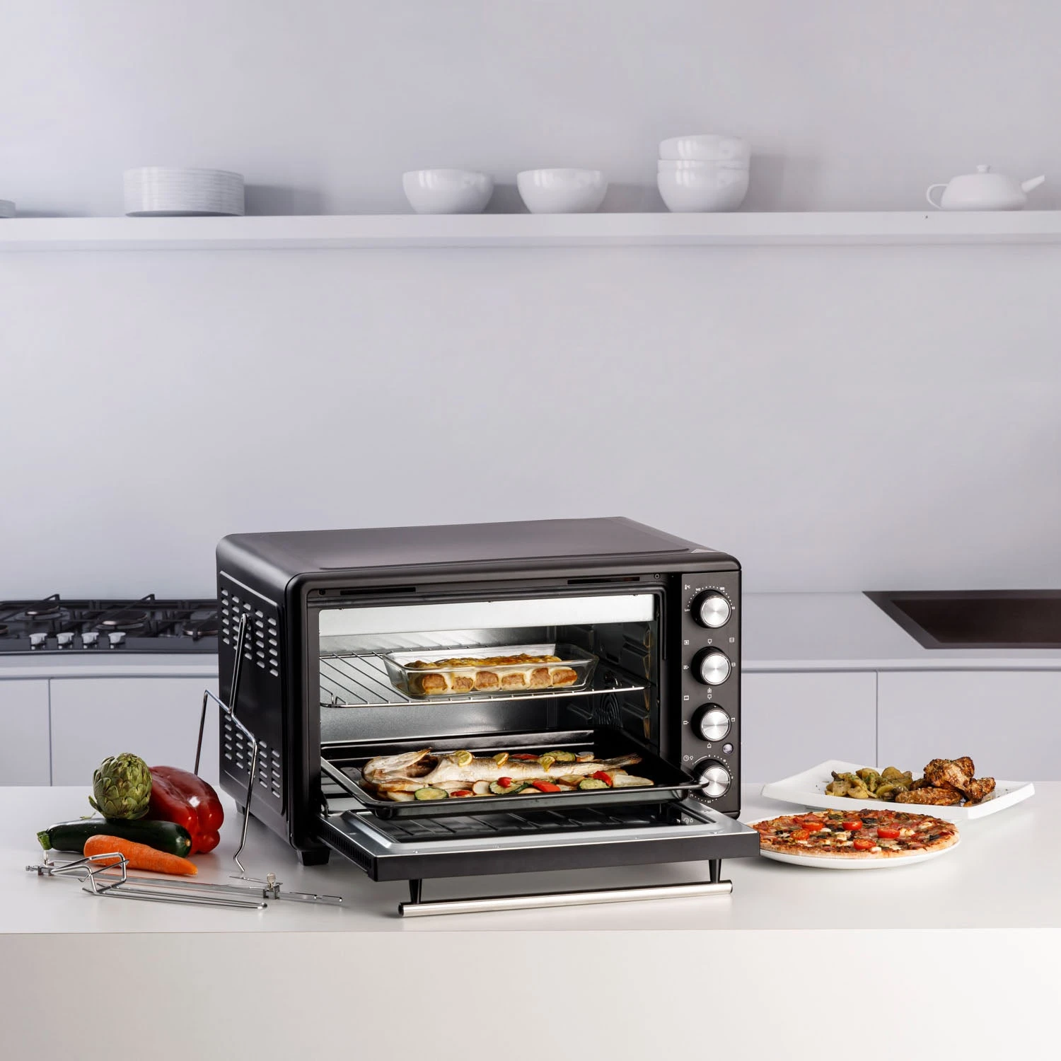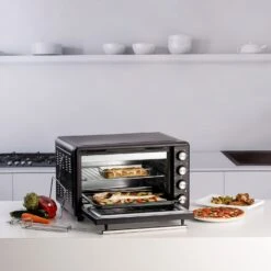 Con el horno eléctrico de sobremesa Taurus Horizon 45, podrás cocinar tus recetas favoritas sin necesidad de tener una cocina totalmente equipada. Sus 2000W de potencia y sus 45 litros de capacidad lo convierten en un mini horno funcional y versátil que te permitirá disfrutar de todos tus platos