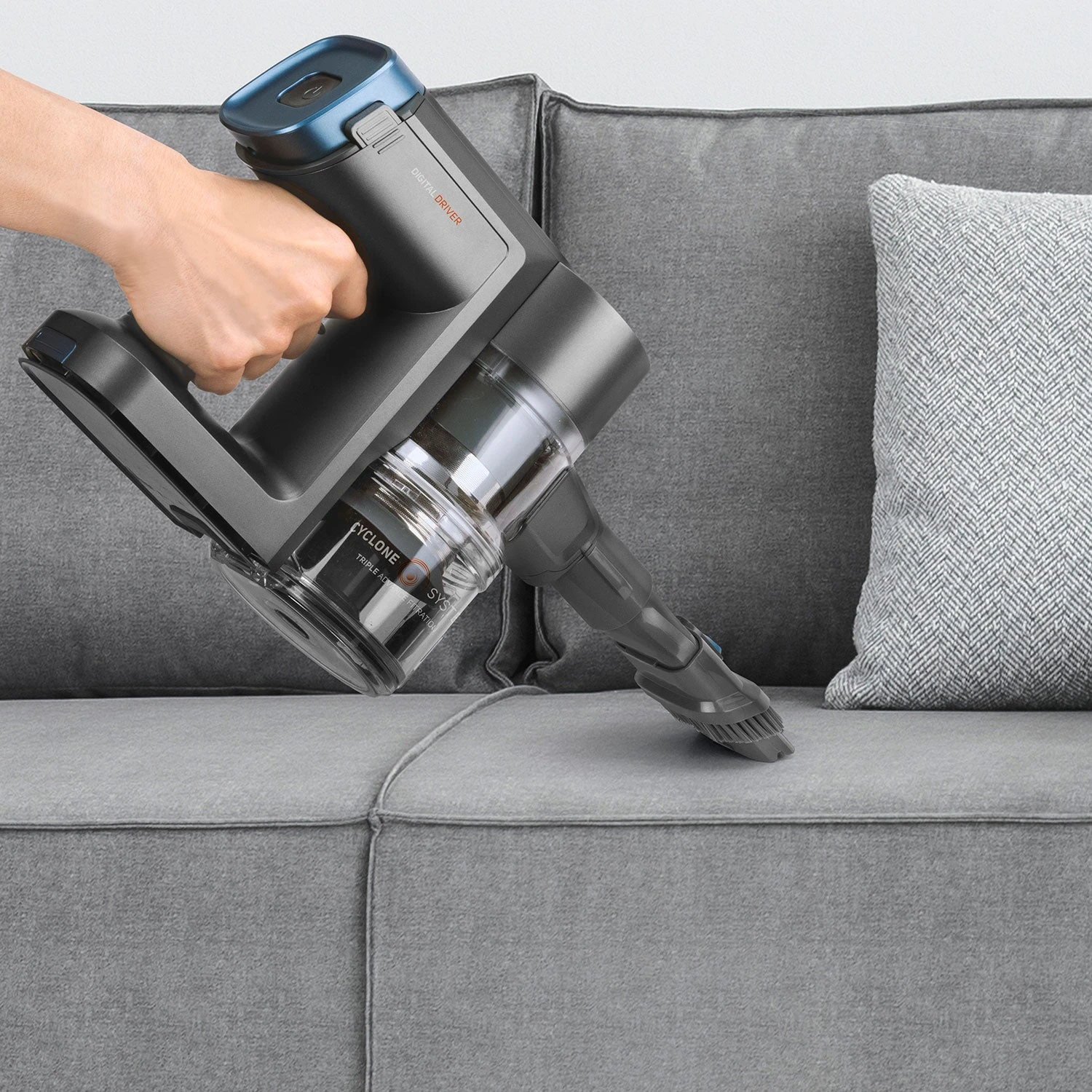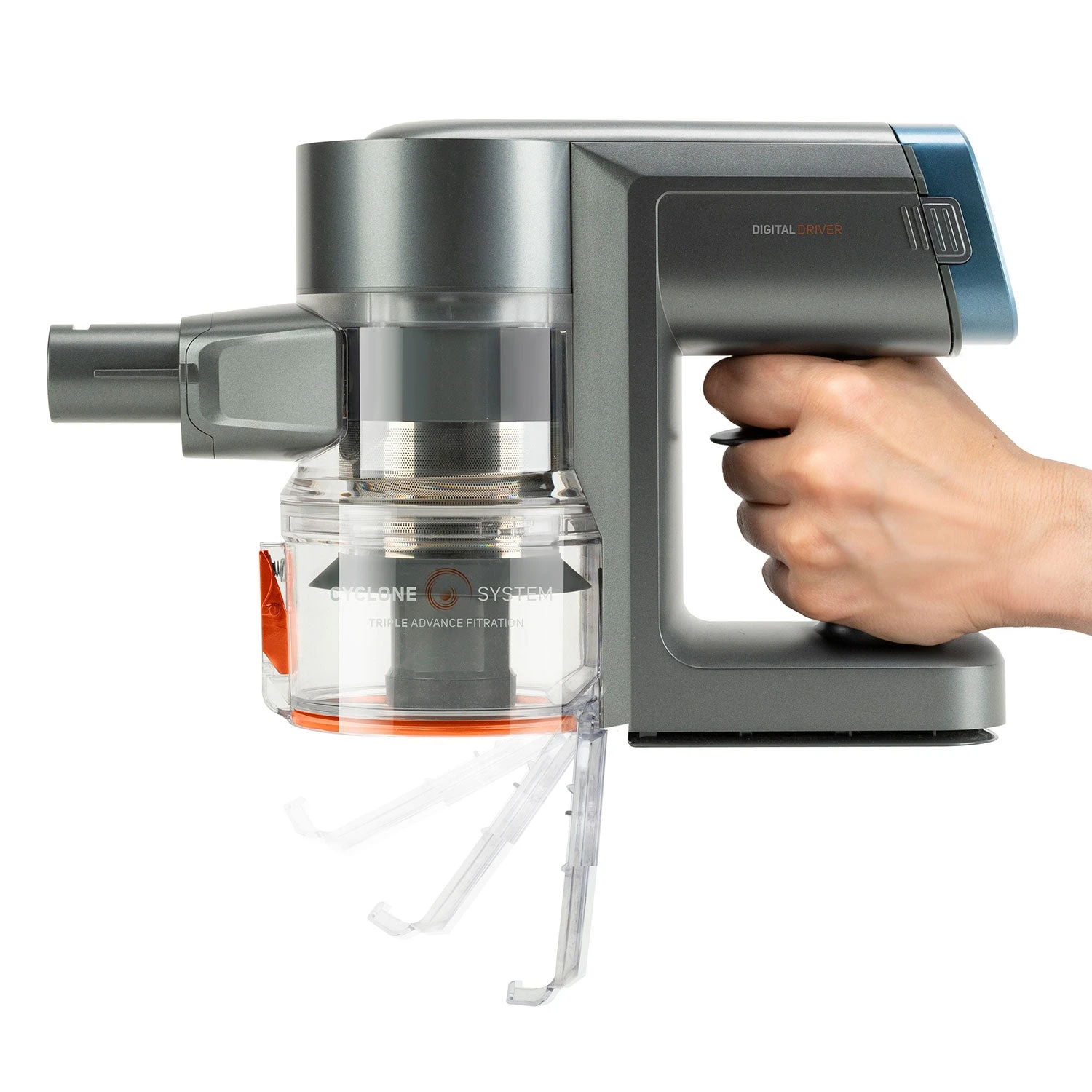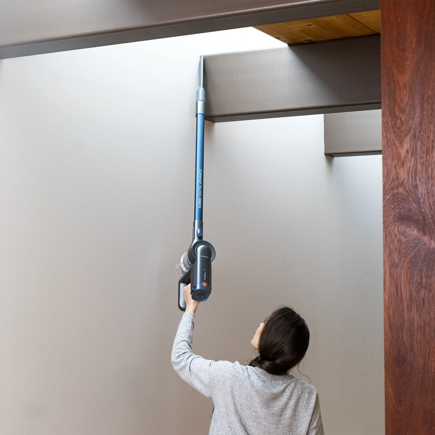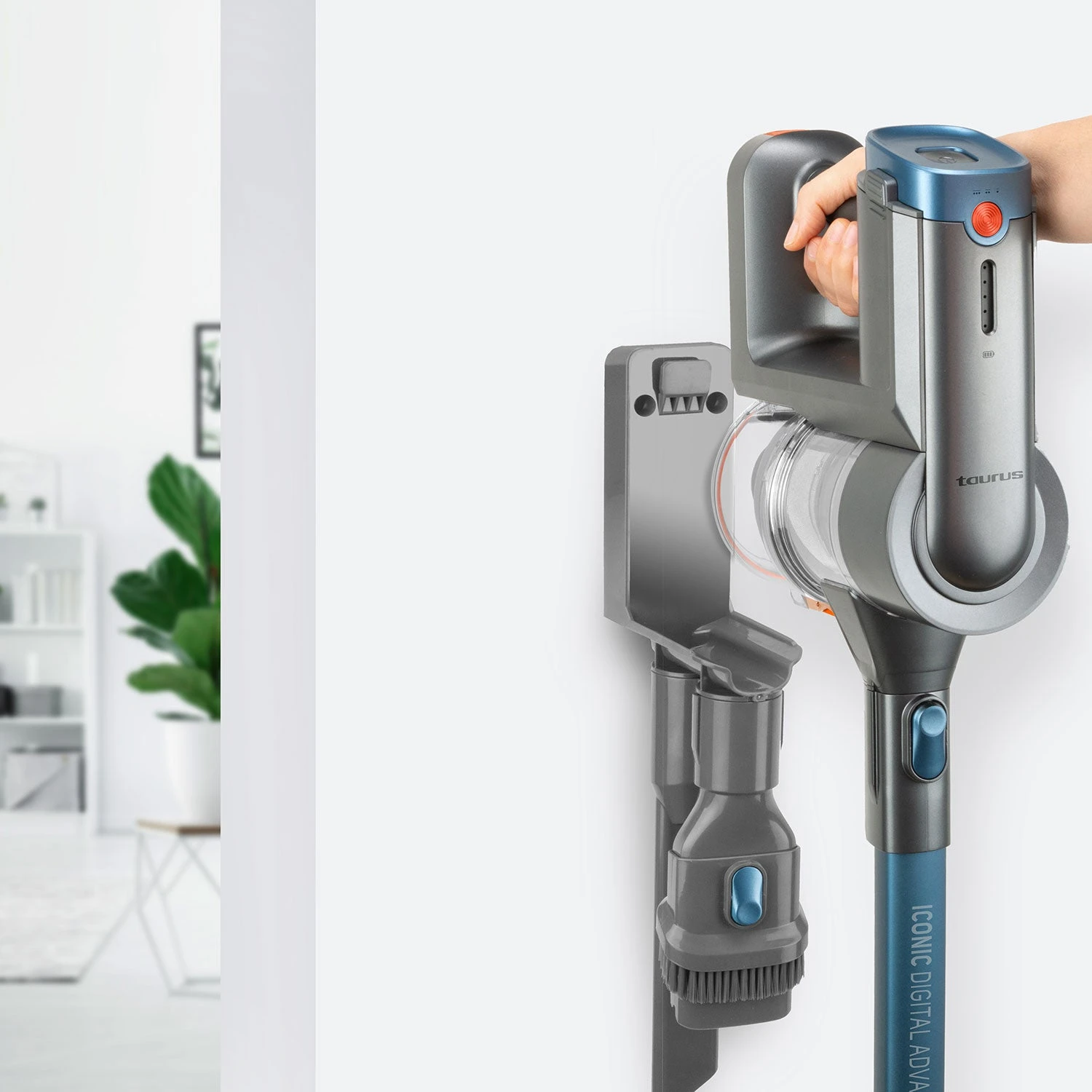 El aspirador escoba sin cable Iconic Digital Advance ofrece 450W de potencia con motor Digital Brushless, 140AW y 25.000Pa de succión. Su batería de litio 25.2V proporciona hasta 60 minutos de autonomía en modo ECO y se recarga en 4 horas. Incluye doble zapata motorizada (All Road y Fuzzy), iluminación LED, triple filtración avanzada y depósito de 650 ml con vaciado higiénico. Ligero y ergonómico, su diseño flexible y accesorios intercambiables facilitan la limpieza en todo tipo de superficies.