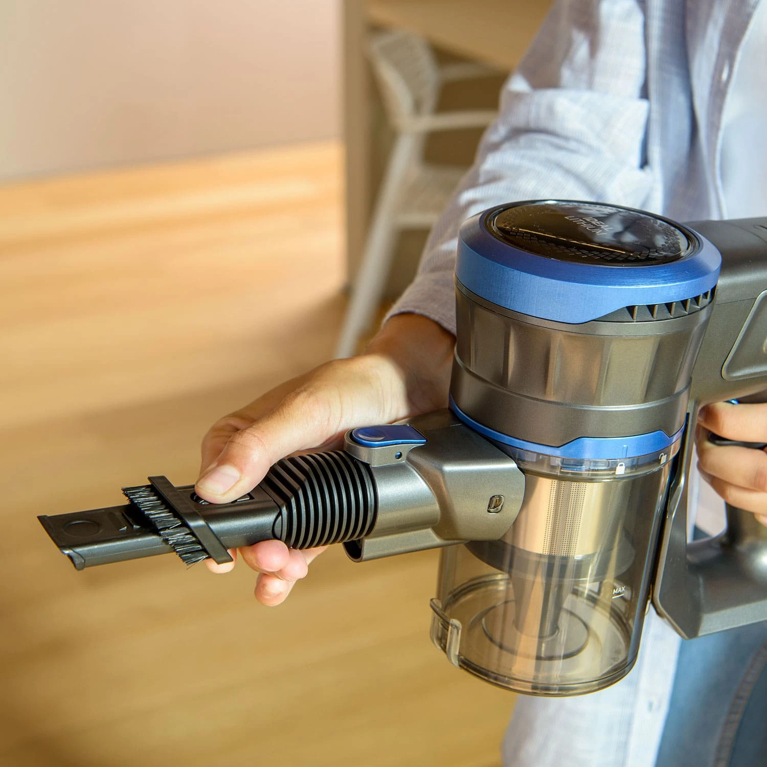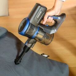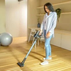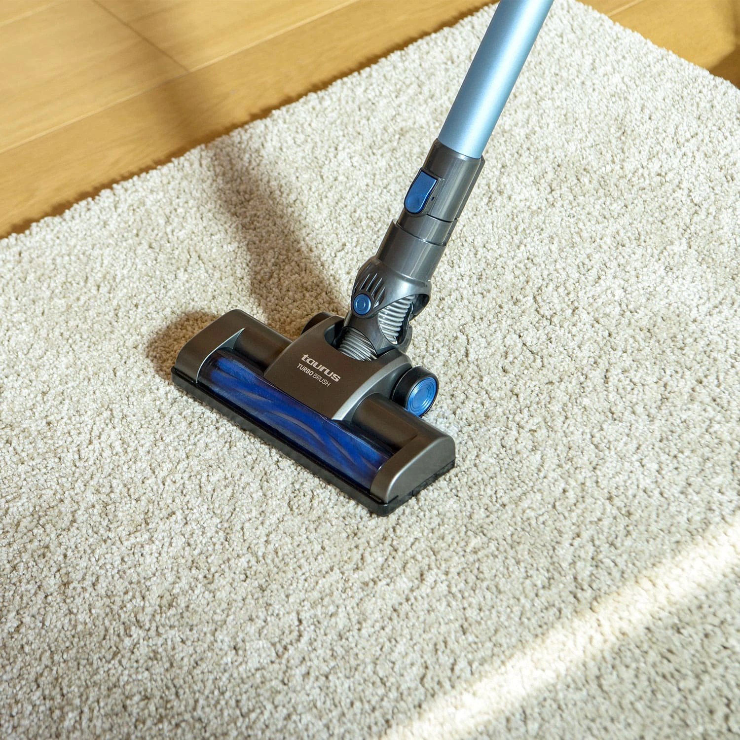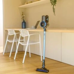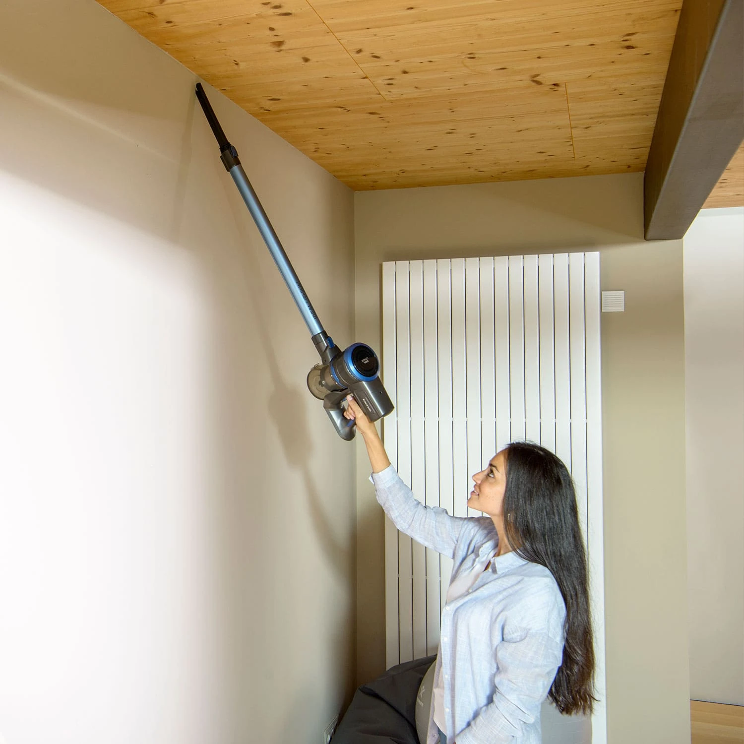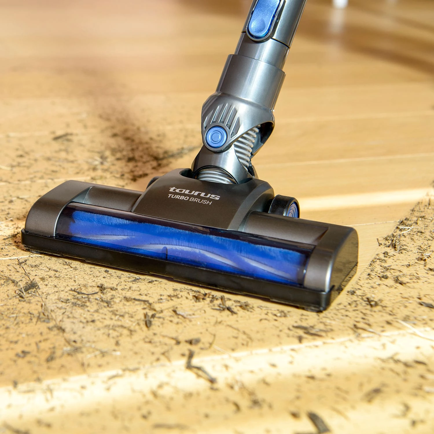 El aspirador 3 en 1 ofrece limpieza versátil como escoba, de mano y lanza extra larga para zonas altas. Con batería de litio de 22.2V y Turbo Cyclonic System, garantiza una limpieza profunda en suelos, moquetas y baldosas. Incluye cepillo motorizado, depósito higiénico de 650 ml y filtro HEPA que retiene el 99,9% del polvo. Su diseño ergonómico, articulación 180º y soporte de pared facilitan su uso y almacenamiento. Ideal para hogares que buscan eficiencia y comodidad.