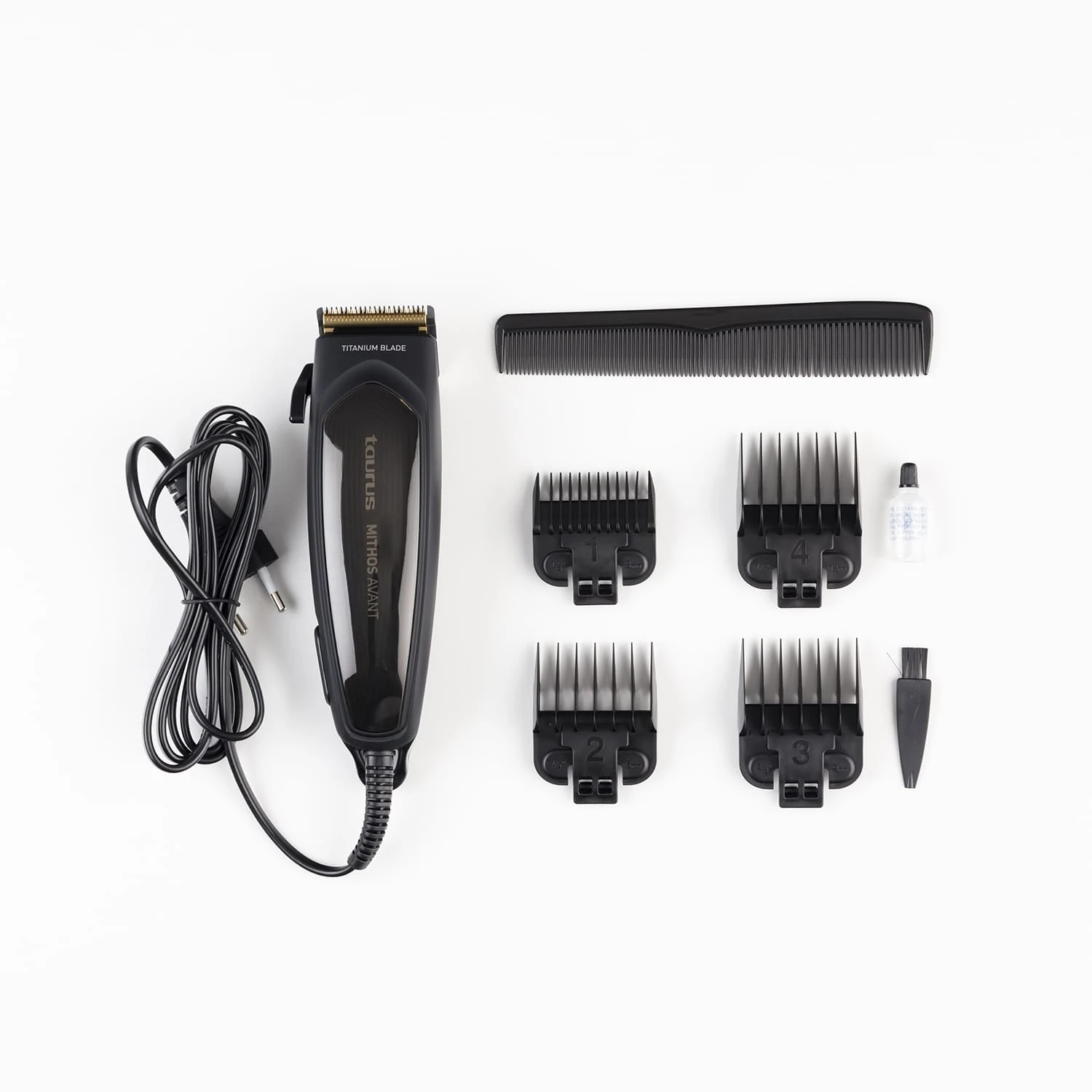 Esta máquina de corte con cuchillas de titanio ultra afiladas ofrece un corte preciso y duradero. Su motor AC de 3000 rpm proporciona un rendimiento potente, mientras que sus 10 alturas de corte y 4 peines guía (3, 6, 9 y 12 mm) permiten una gran versatilidad. Funciona con cable para garantizar un uso continuo. Además, incluye peine, cepillo de limpieza, aceite lubricante y protector de cuchillas, asegurando un mantenimiento óptimo.
