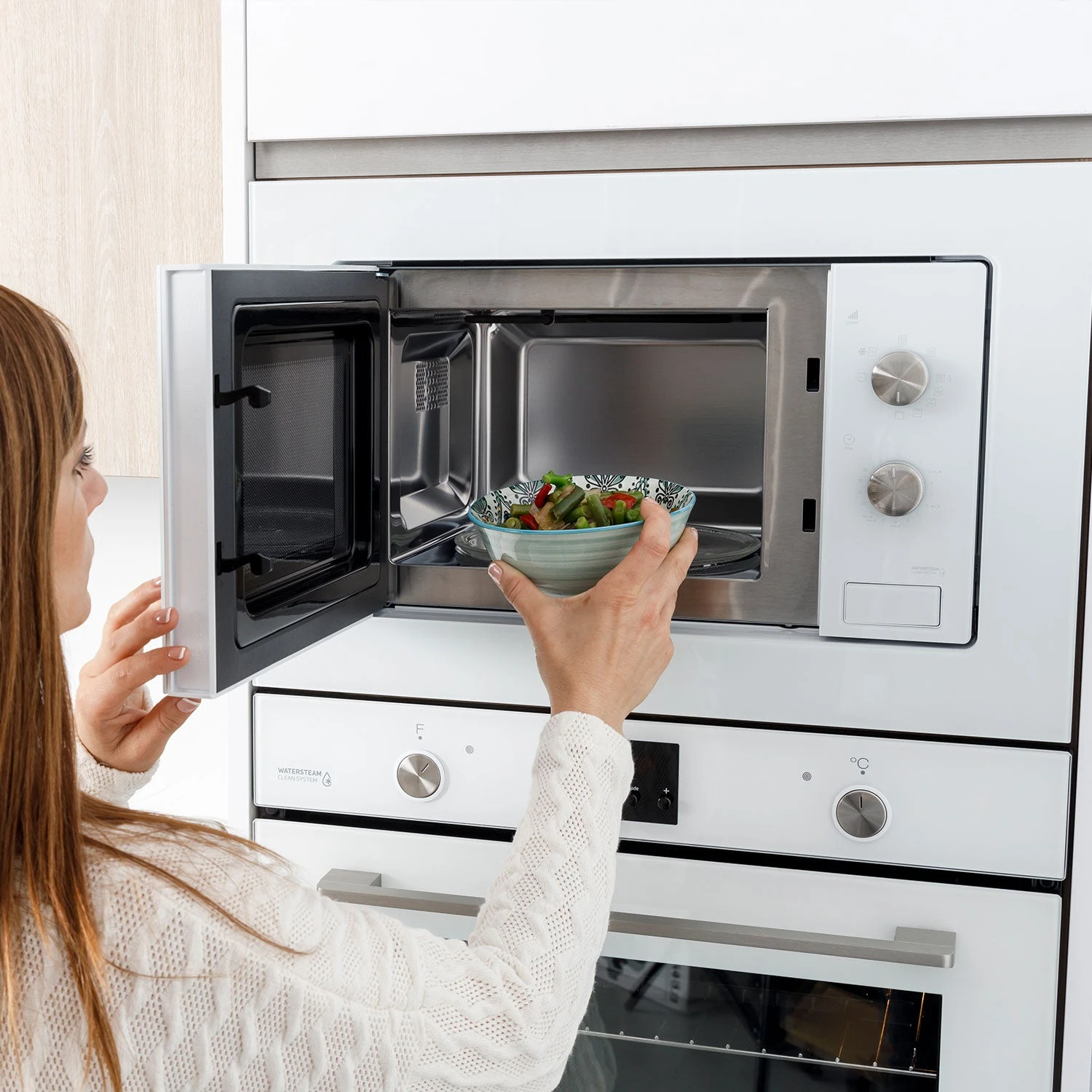 Gratina, calienta y cocina todo tipo de platos e ingredientes con el microondas MO20WHM. Un microondas con 20L de capacidad, 5 potencias, 3 combinaciones de cocción+grill y varias funciones. Cuenta con función descongelar y función grill. La función grill es ideal para conseguir unos gratinados perfectos o esos resultados más dorados en carnes, patatas y pescados. Para que los resultados se obtengan de manera más rápida, el microondas encastrable MO20WHM de Taurus tiene una potencia de 800W de potencia de microondas y 1000W de potencia de grill. El microondas cuenta con un diseño moderno y de muy fácil uso, con dos selectores manuales giratorios y de gran visibilidad. El microondas MO20WHM incluye parrilla elevadora para el grill y plato giratorio de 245 mm de diámetro.