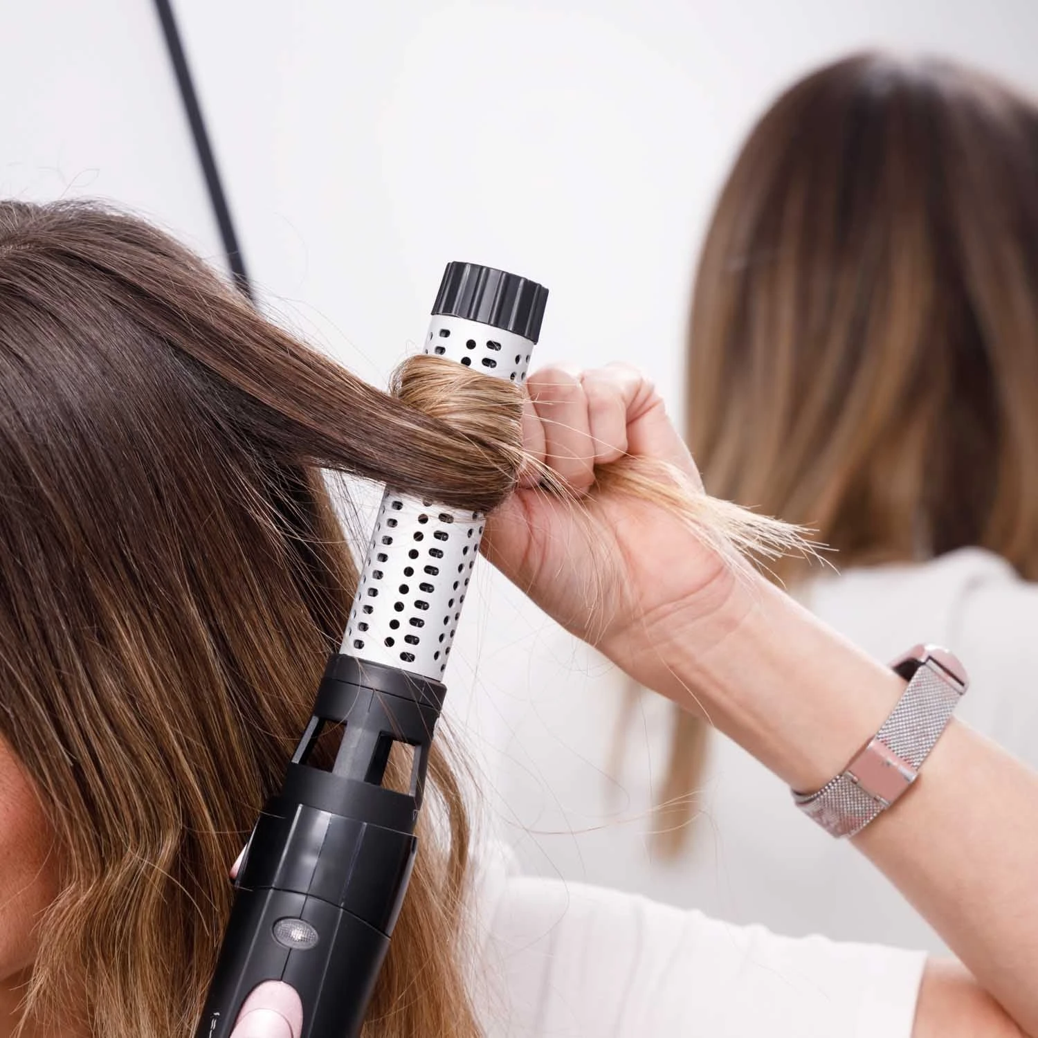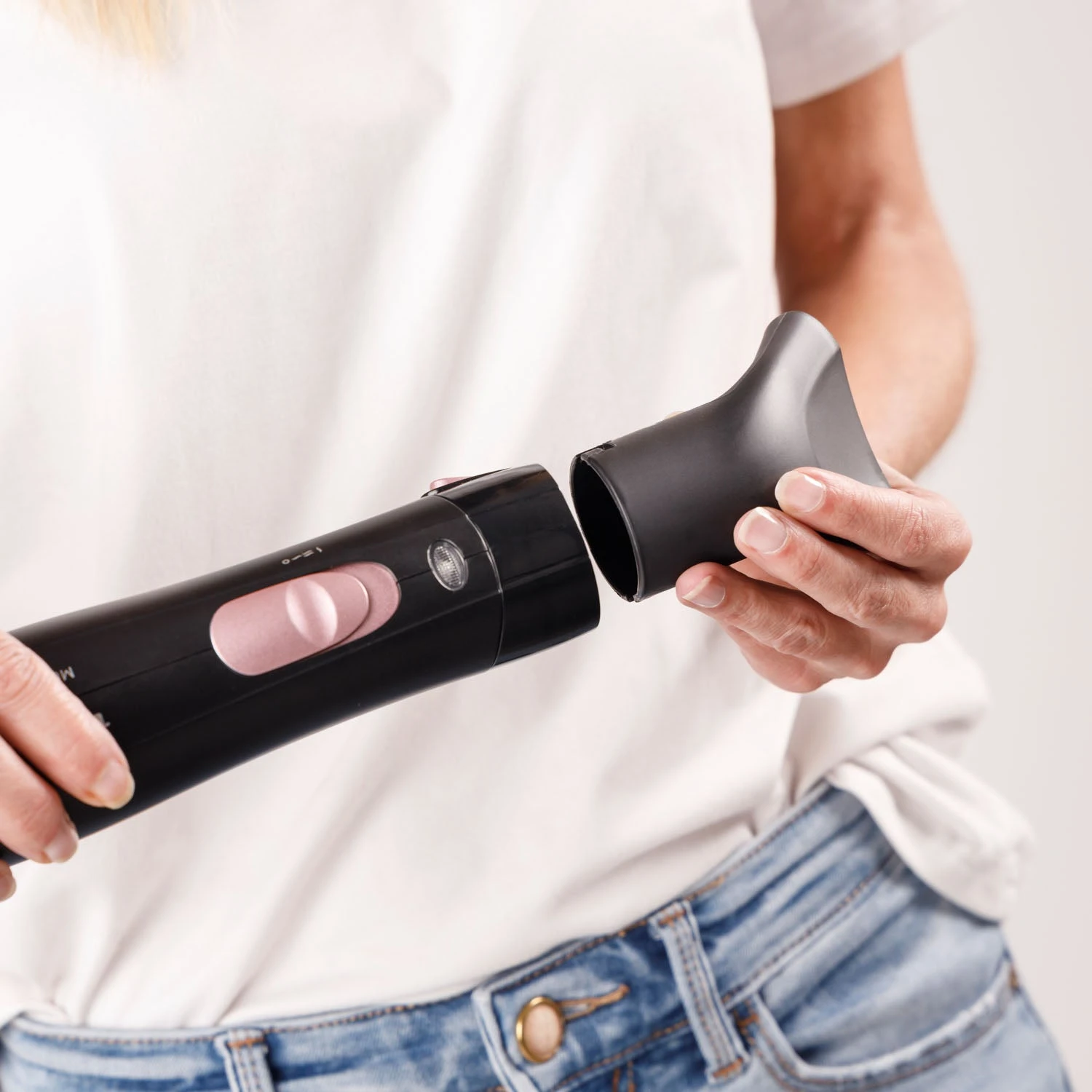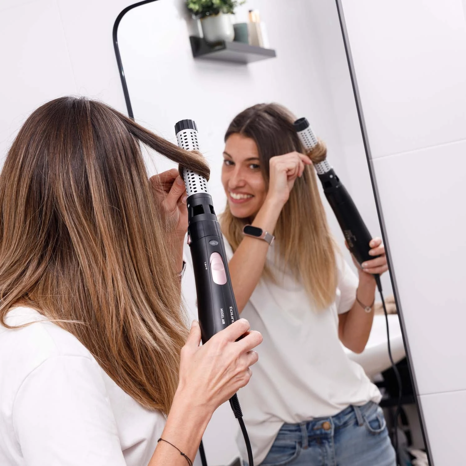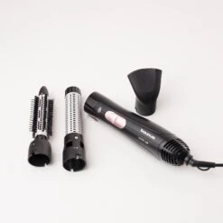 El moldeador de pelo Model Air de Taurus es la herramienta ideal para conseguir estilos profesionales en casa gracias a su potente motor de 1200 W, que asegura un secado rápido y eficiente. Incluye tres accesorios intercambiables: un concentrador para peinados precisos, un cepillo de cerdas combinadas que desenreda y aporta volumen, y un cepillo de cerdas retráctiles que permite crear rizos definidos o dar un extra de volumen.