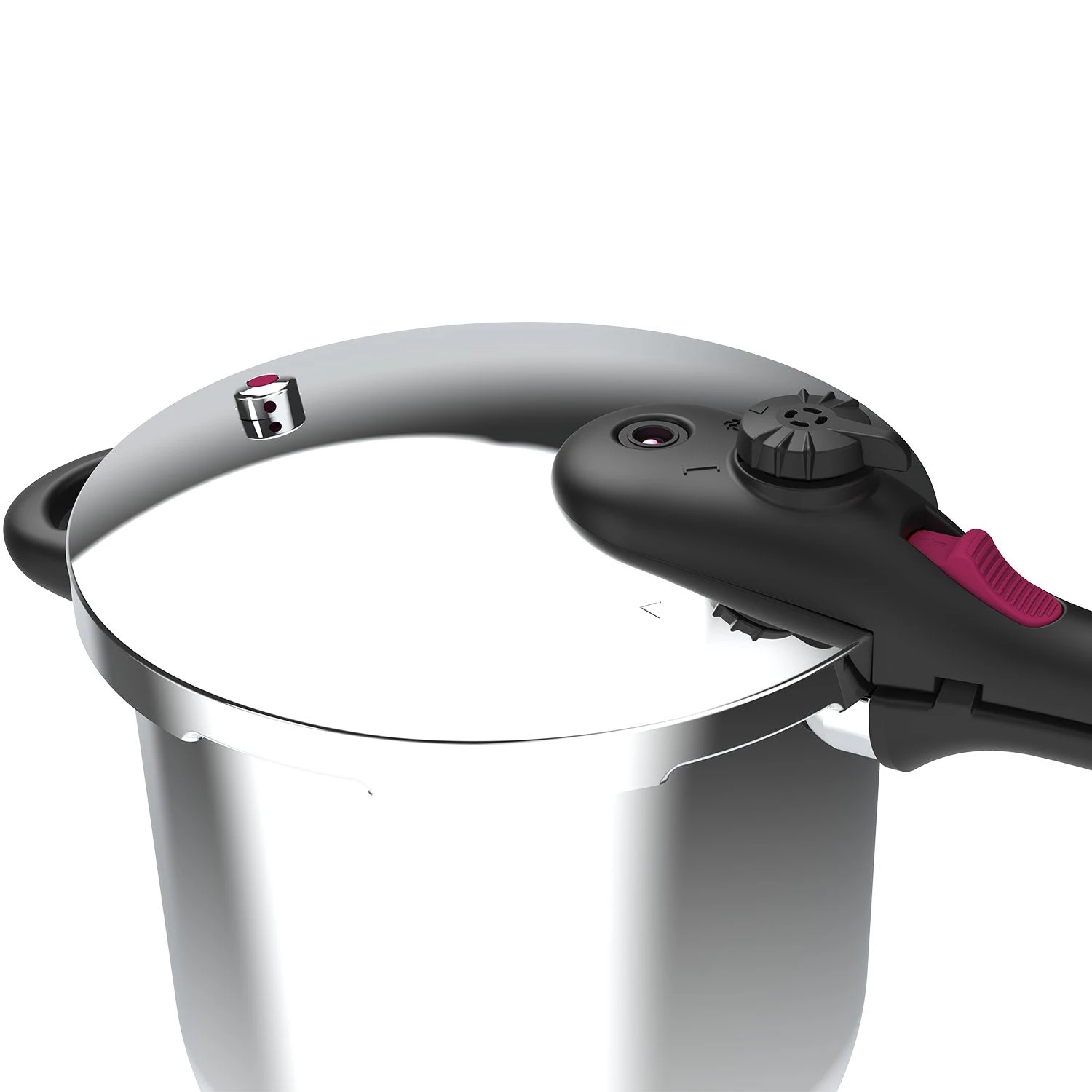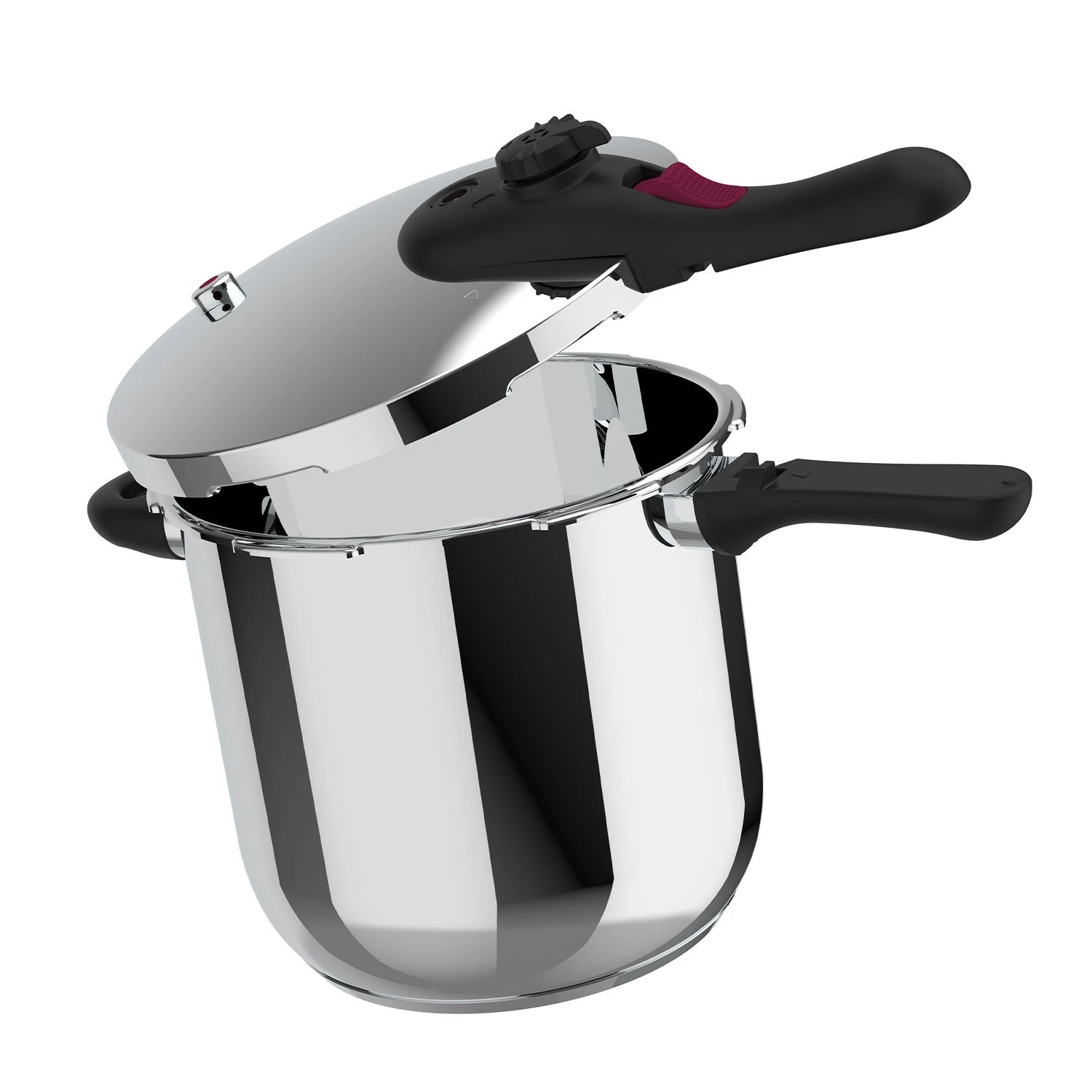 La olla a presión Moments Rapid 10L de Taurus es perfecta para preparar grandes cantidades de comida de forma rápida y segura. Fabricada en acero inoxidable SS304, cuenta con válvula de trabajo con 2 posiciones (100 KPA y descompresión) y triple sistema de seguridad. Su mango auto-lock, asas de toque frío y válvula extraíble garantizan comodidad y fácil limpieza. Apta para todos los fuegos y lavavajillas, conserva las propiedades de los alimentos durante la cocción.