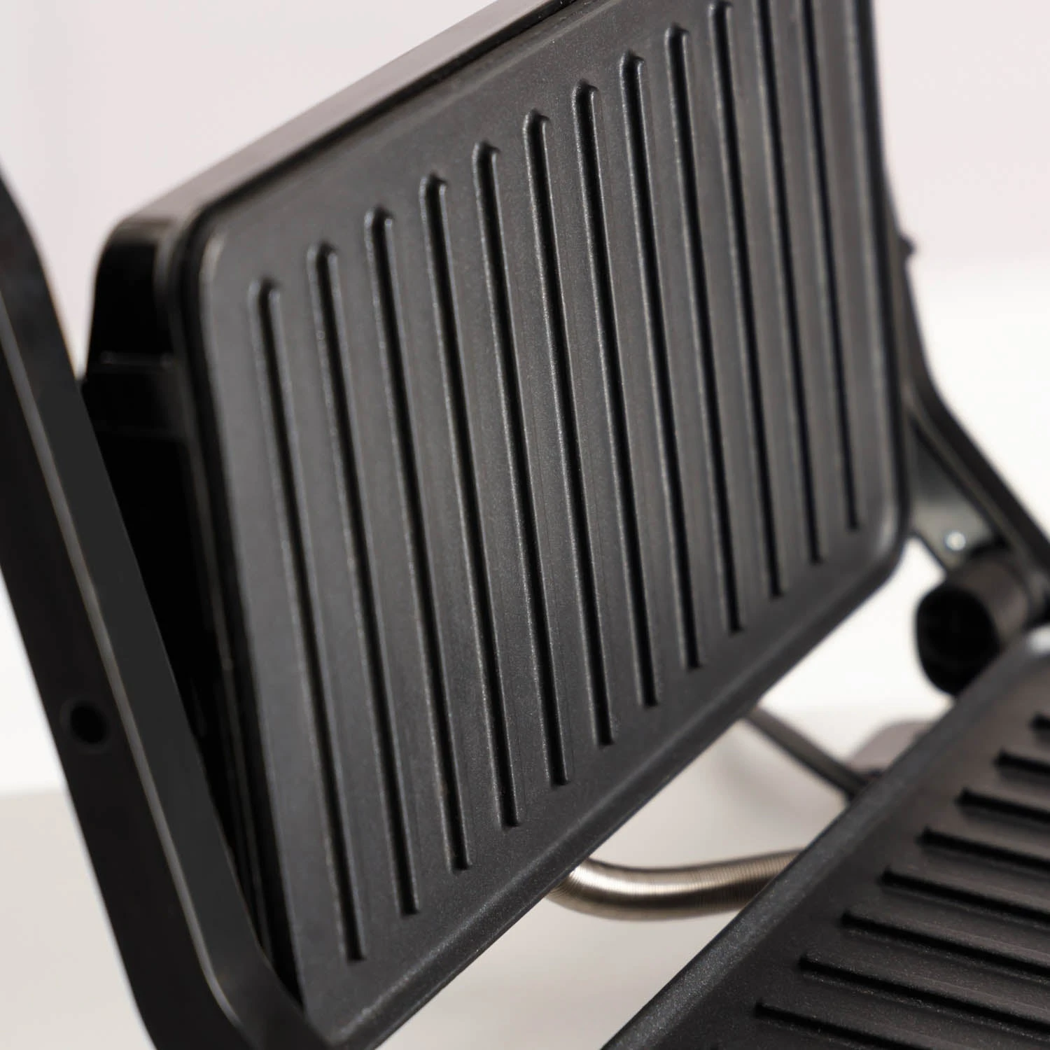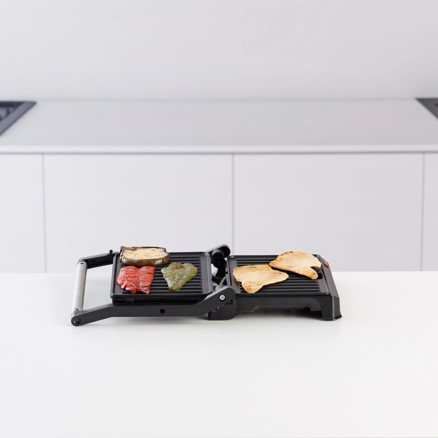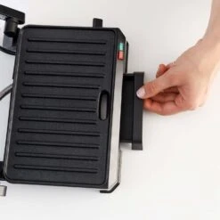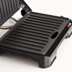 MyGrill Legend de Taurus cuenta con 1000W de potencia, apertura 180º y placas de aluminio antiadherentes que aseguran una cocción homogénea y saludable. Su tapa basculante se ajusta al grosor de los alimentos, y el sistema de bloqueo de placas facilita el almacenamiento. Con indicador luminoso de temperatura y bandeja recoge grasas extraíble, es práctico y fácil de limpiar. Perfecto para asar carnes, verduras o preparar sándwiches, combina diseño compacto, eficiencia y materiales libres de PFOA para un uso seguro.