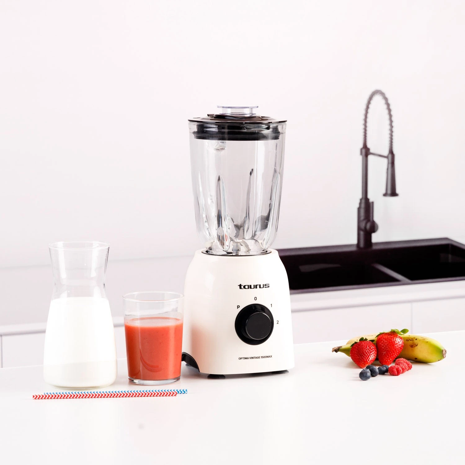 La batidora de vaso Optima Vintage 1500MAX de Taurus combina un elegante diseño retro con una tecnología de alto rendimiento. Con una potencia nominal de 800W y una potencia máxima de 1500W, ofrece 21,500 rpm, lo que la hace ideal para preparar desde batidos y cócteles hasta granizados, siendo capaz de picar hielo con facilidad. Su jarra de cristal graduada de 1.8L (1.5L de capacidad útil) es resistente y cuenta con una boca de vertido que facilita el manejo de líquidos.