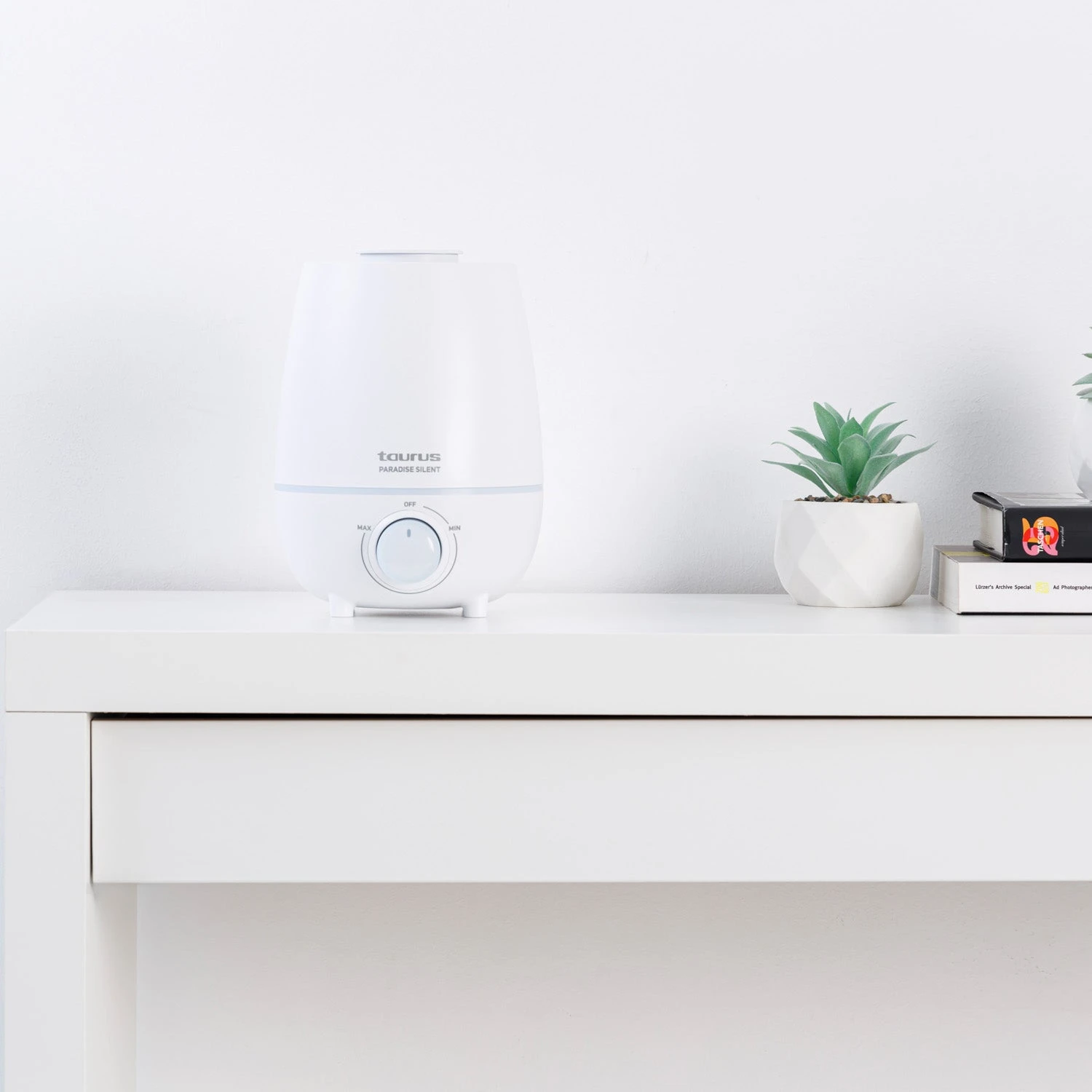 Crea un ambiente acogedor y de bienestar con el humidificador ultrasónico Paradise Silent. Es ultra silencioso y apto para aromaterapia, por lo que podrás usarlo incluso en las noches en los que el ambiente esté más seco o necesites descansar profundamente.