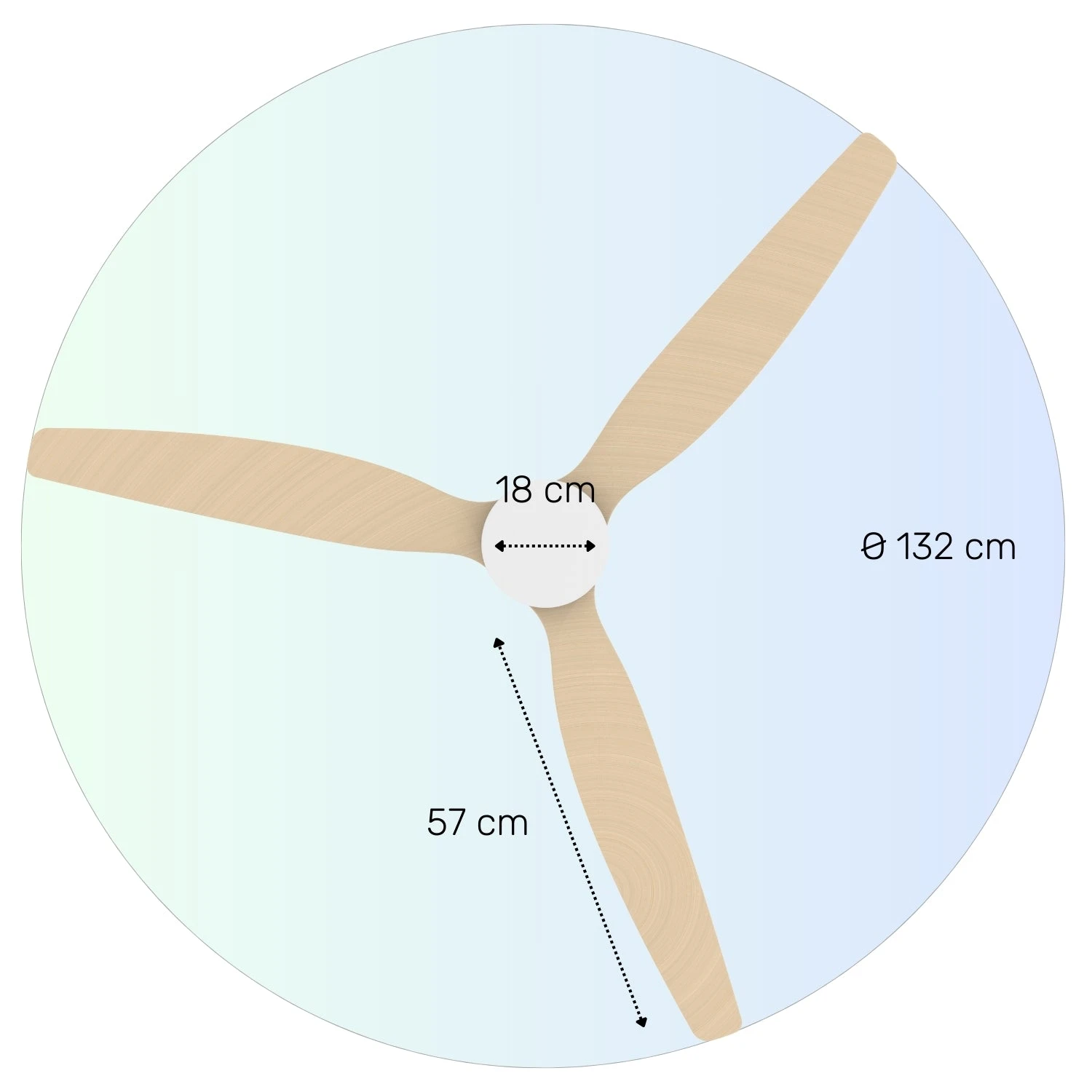 El ventilador de techo ultrasilencioso de 30W con luz LED de 24W y diámetro de 132 cm combina diseño moderno y funcionalidad. Sus 6 velocidades, aspas de madera y luz regulable (fría, cálida, neutra) garantizan confort y estilo. Incluye temporizador de 8 horas, memoria de luz, posición invierno-verano y mando a distancia. Perfecto para uso todo el año, es ideal para refrescar y decorar cualquier espacio con eficiencia y elegancia.
