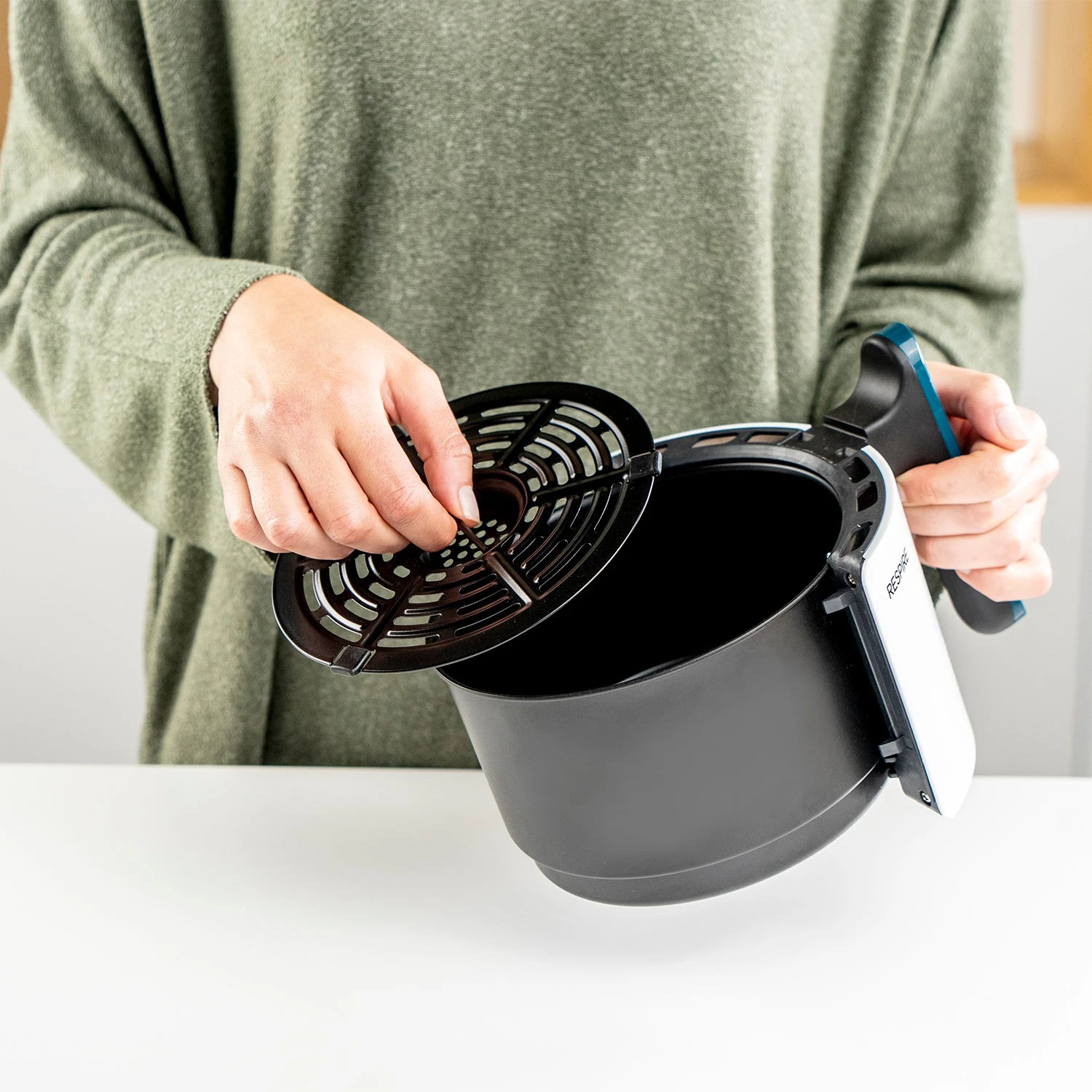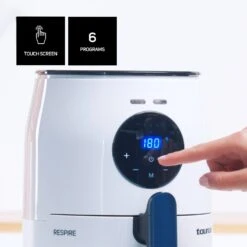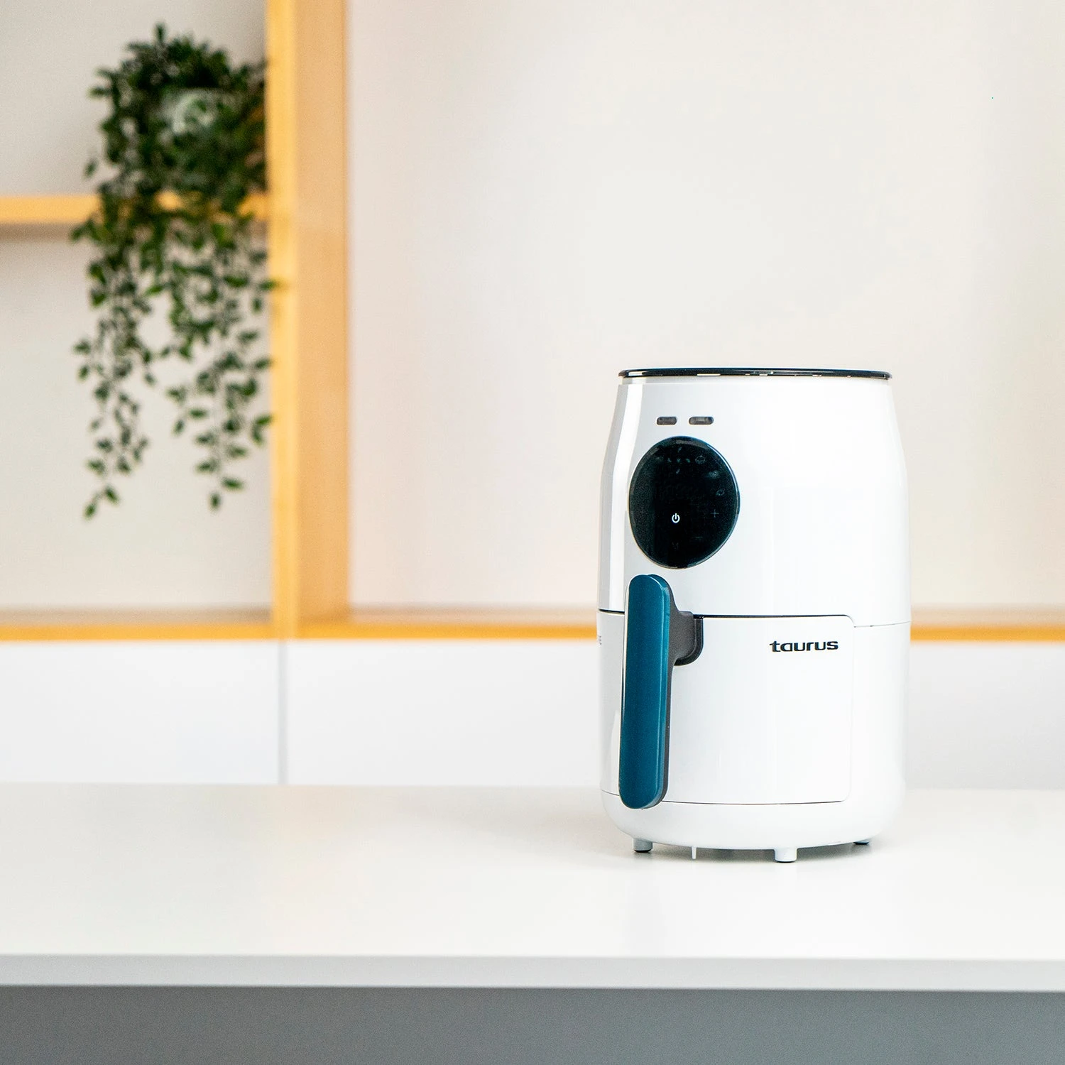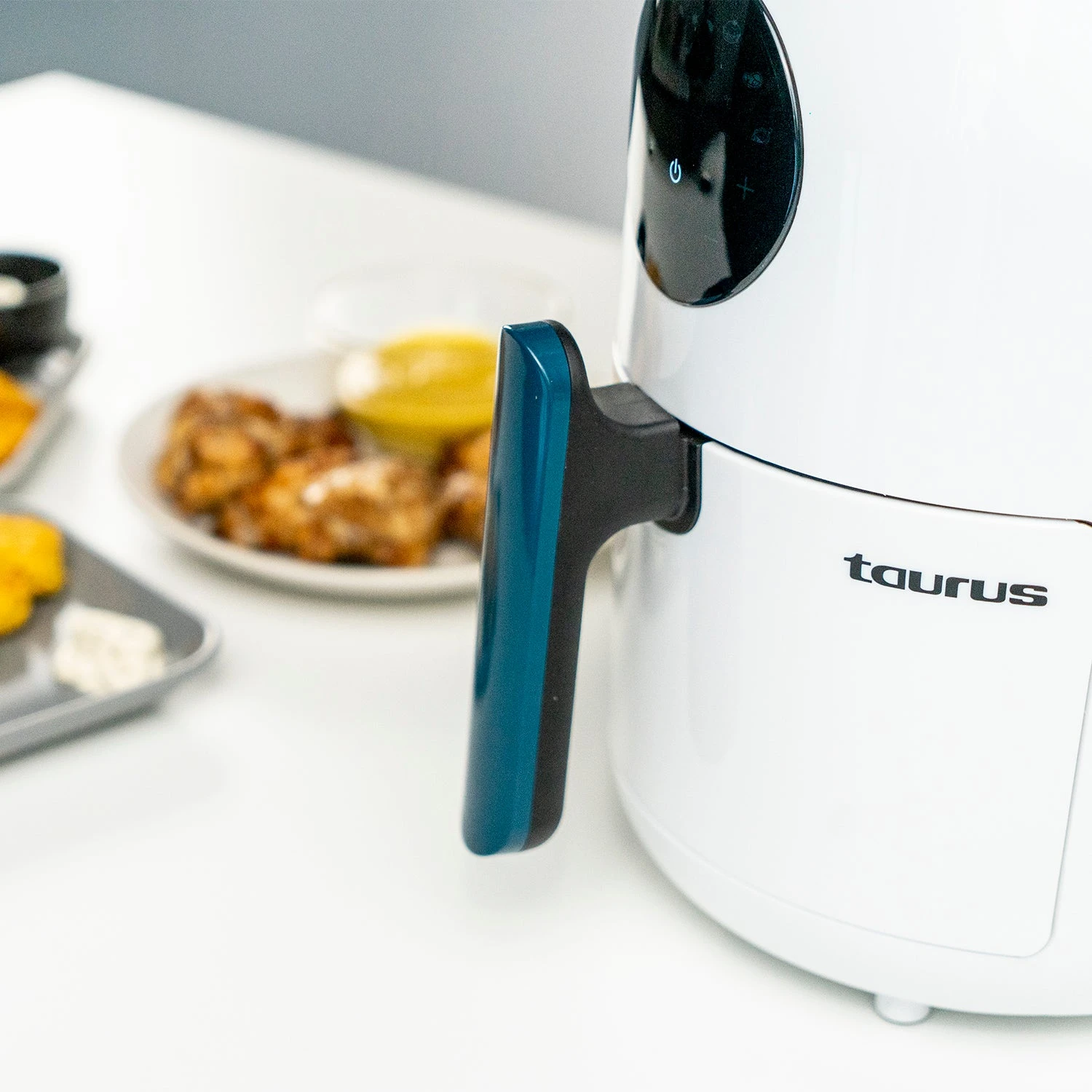 Respire es la freidora de aire sin aceite más compacta de Taurus. Cuenta con una capacidad de 1.5 litros y un diseño ajustado que la convierten en la freidora ideal para cocinas pequeñas o para un uso individual o en pareja.