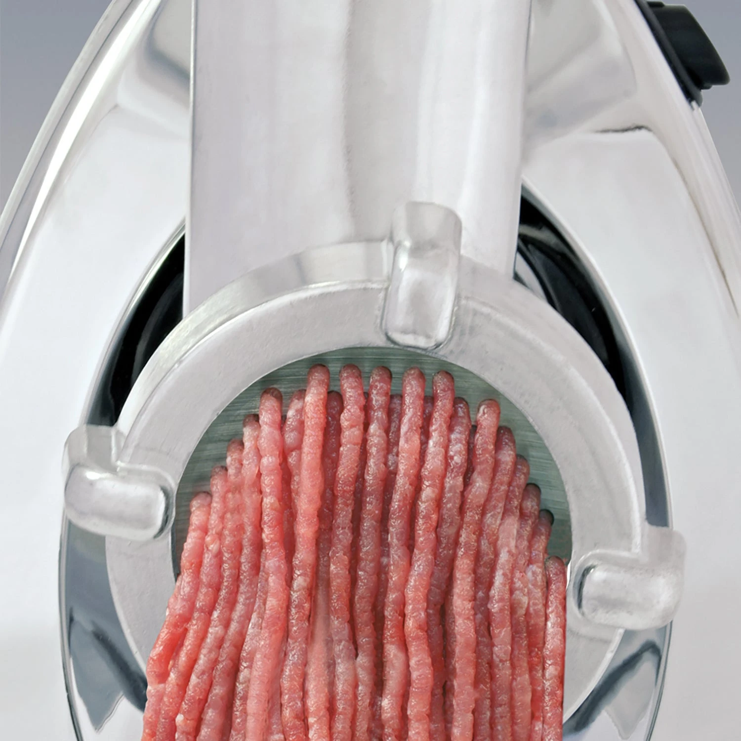 La picadora eléctrica de 450W es perfecta para preparar carne picada y recetas caseras. Incluye función reverse, bandeja y tubo alimentador de metal para mayor durabilidad, y cuchillas para 3 tamaños de picado. Con potencia máxima bloqueada de 1200W, ofrece un rendimiento óptimo en todo momento. Además, incorpora accesorios para kebbe y embutidos, brindando versatilidad en la cocina. Es una herramienta resistente, práctica y eficiente, ideal para quienes buscan calidad y facilidad en sus preparaciones.