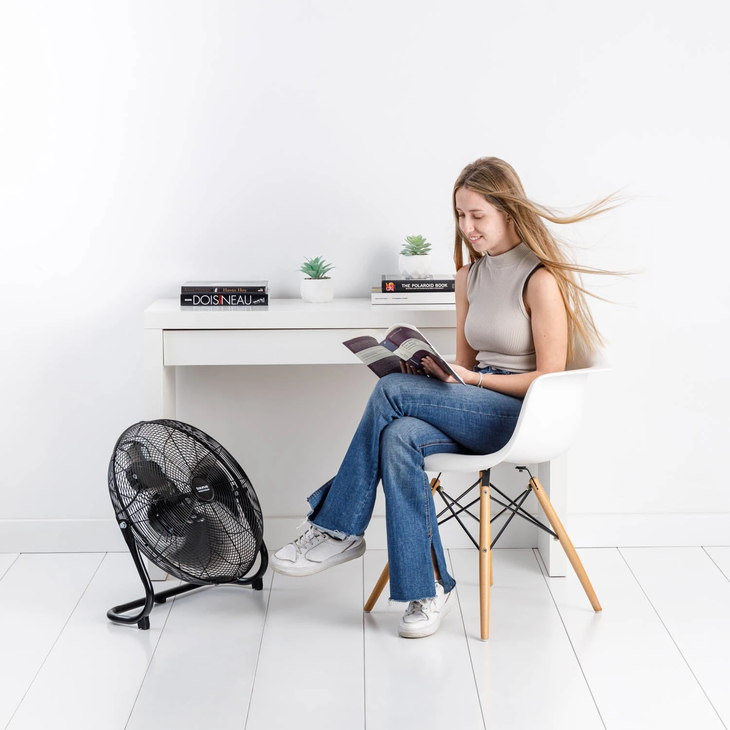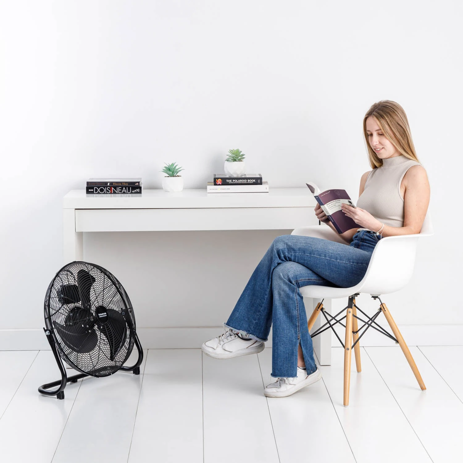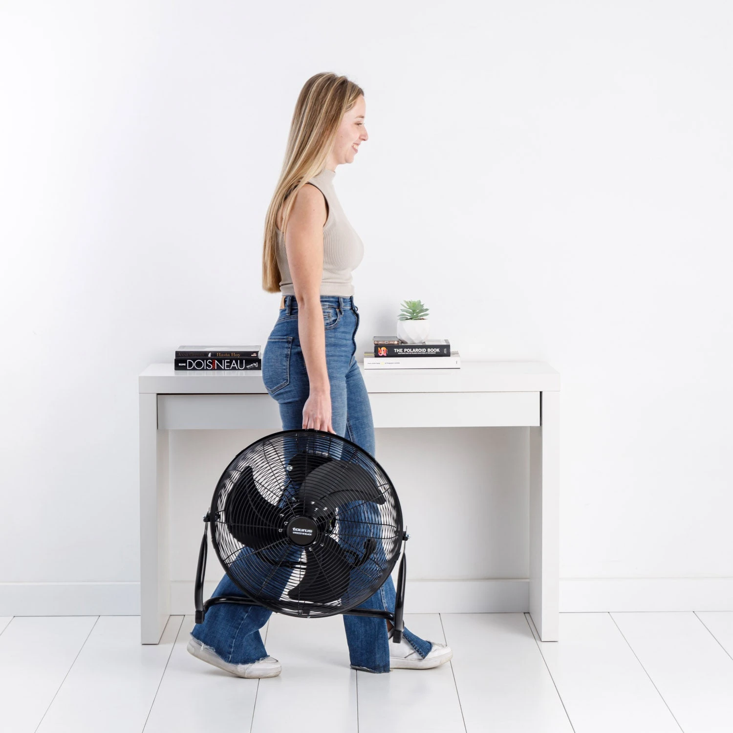 El ventilador Sirocco 18 Black de Taurus de 120W ofrece 3 velocidades ajustables y aspas metálicas de 45 cm para un flujo de aire potente. Con sistema de inclinación, base antideslizante y asa incorporada, es práctico y seguro. Su rejilla extraíble facilita la limpieza y el guarda cable mantiene todo organizado. Perfecto para refrescar cualquier espacio de manera eficiente, combina diseño robusto y funcionalidad, siendo ideal para combatir el calor en el hogar o la oficina.