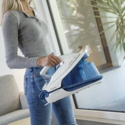 Este centro de planchado de 2400 W y 5.7 bar ofrece un golpe de vapor de 250 g/min y vapor continuo de 160 g/min, eliminando arrugas de manera rápida y efectiva. Con depósito extraíble de 1.5 L y sistema Non Stop, permite repostar sin pausas. Su suela de cerámica, planchado vertical y regulador de temperatura lo hacen versátil y fácil de usar. Además, cuenta con autoapagado en 10 minutos, sistema de bloqueo, avisador acústico, sistema antical y antigoteo, asegurando seguridad y durabilidad.
