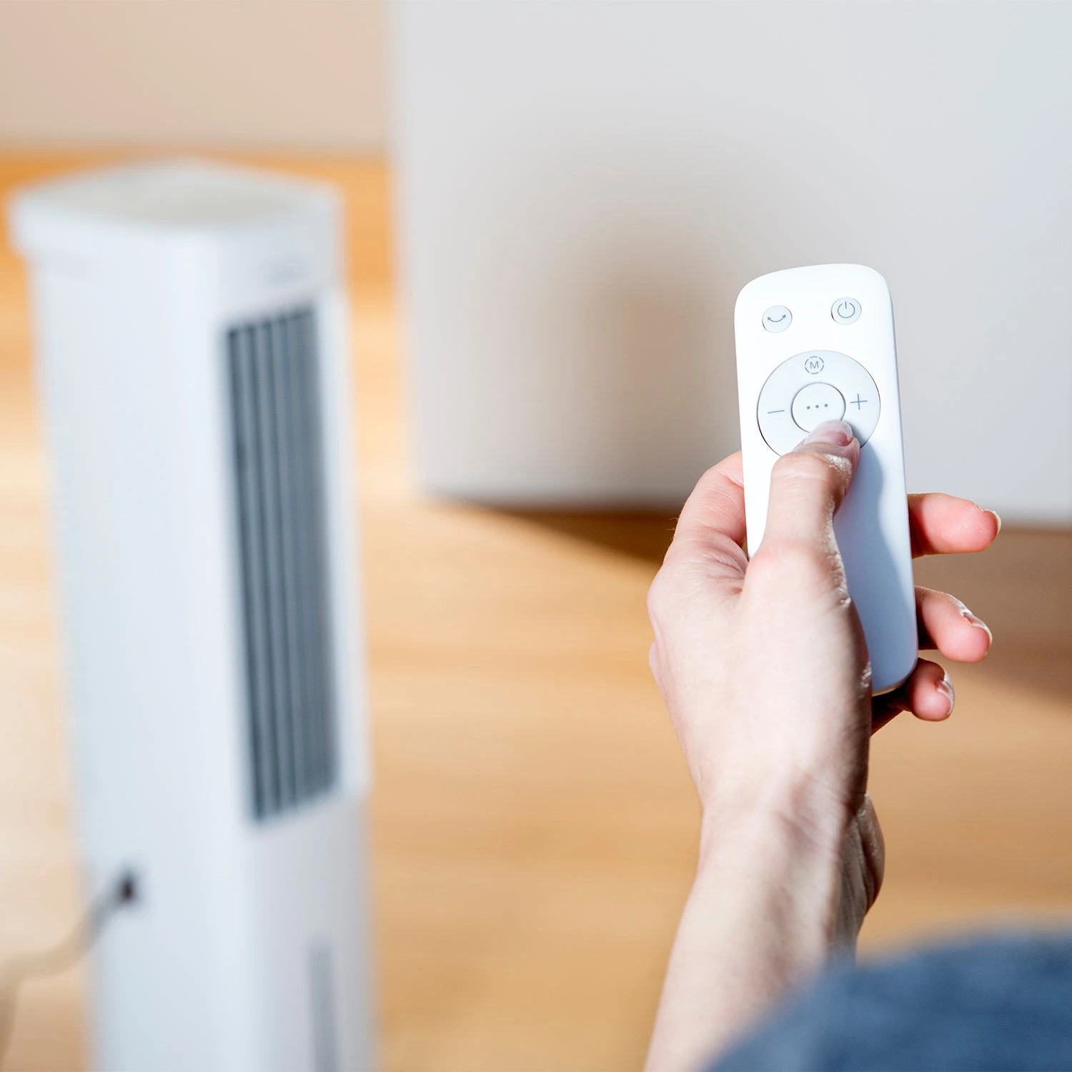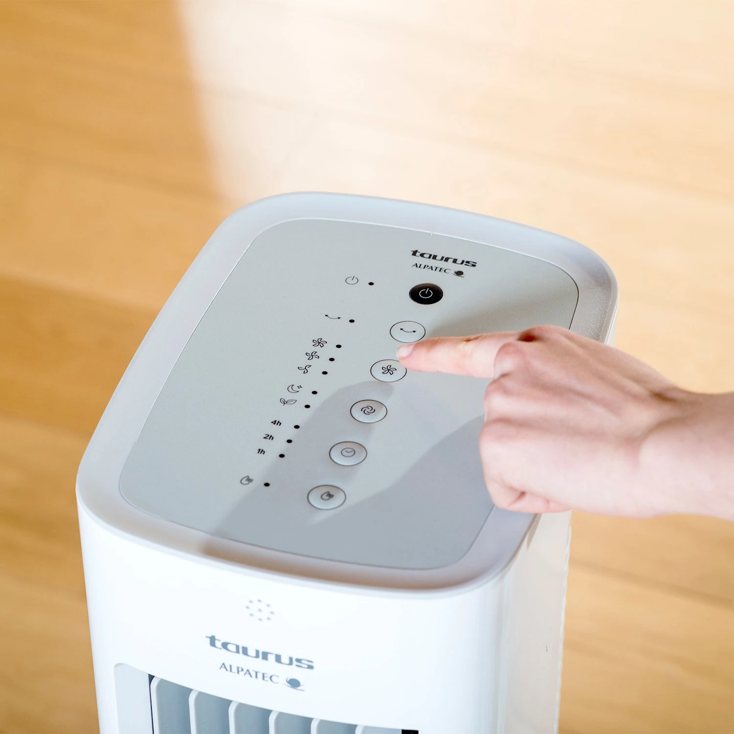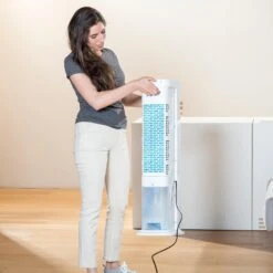 El climatizador evaporativo Snowfield Babel refresca el ambiente de forma instantánea enfriando la temperatura del aire gracias a su depósito de agua de 5 litros y a sus dos 2 contenedores de hielo. El depósito es totalmente extraíble para un fácil llenado.