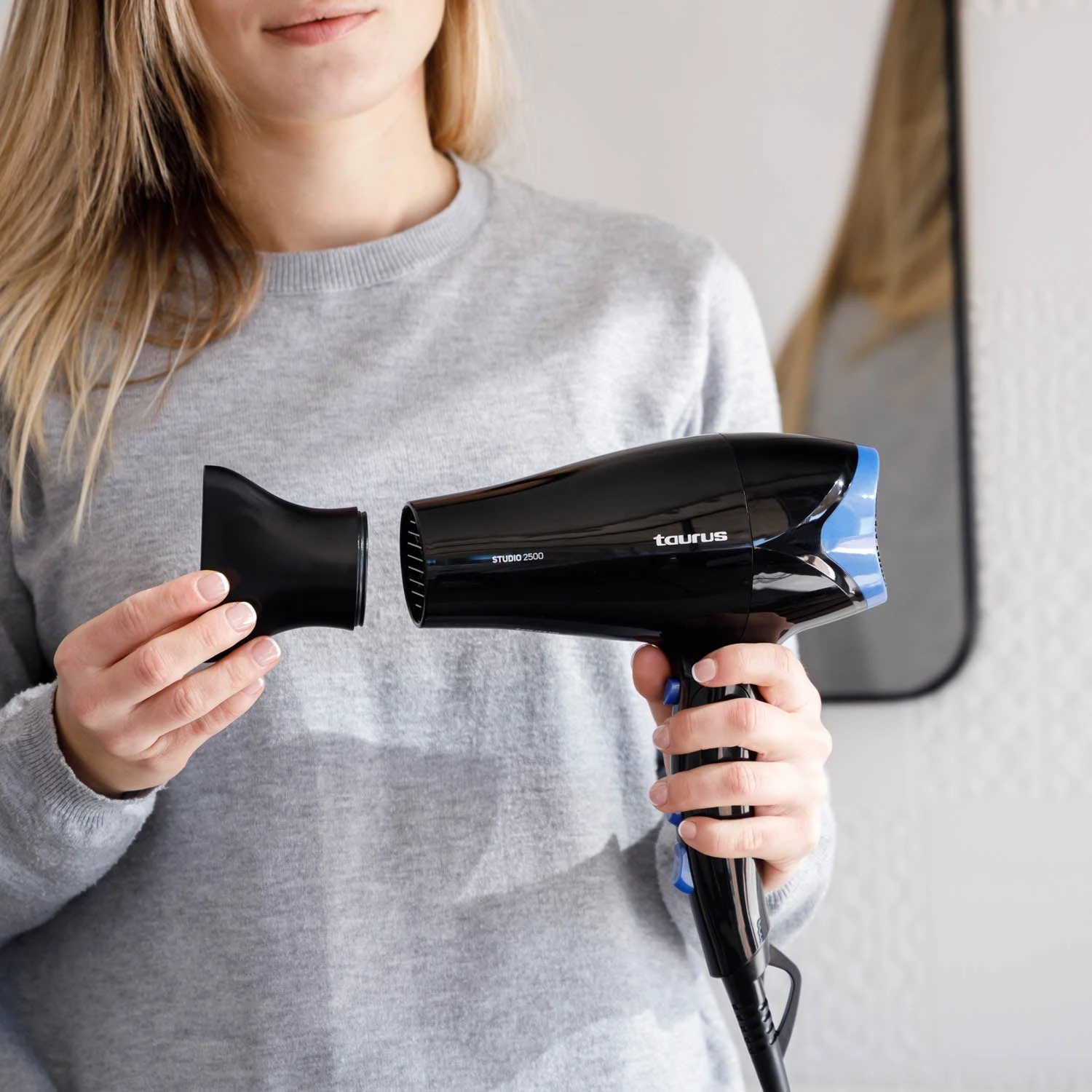 El secador de pelo de 2400W máx. combina potencia y funcionalidad con 2 velocidades, 3 temperaturas y golpe de aire frío para un peinado perfecto. Su mango plegable facilita el transporte y almacenamiento, mientras que el filtro extraíble y la anilla para colgar aportan comodidad y practicidad. Ideal para obtener resultados profesionales en casa o llevarlo de viaje, este secador es versátil, compacto y fácil de usar.