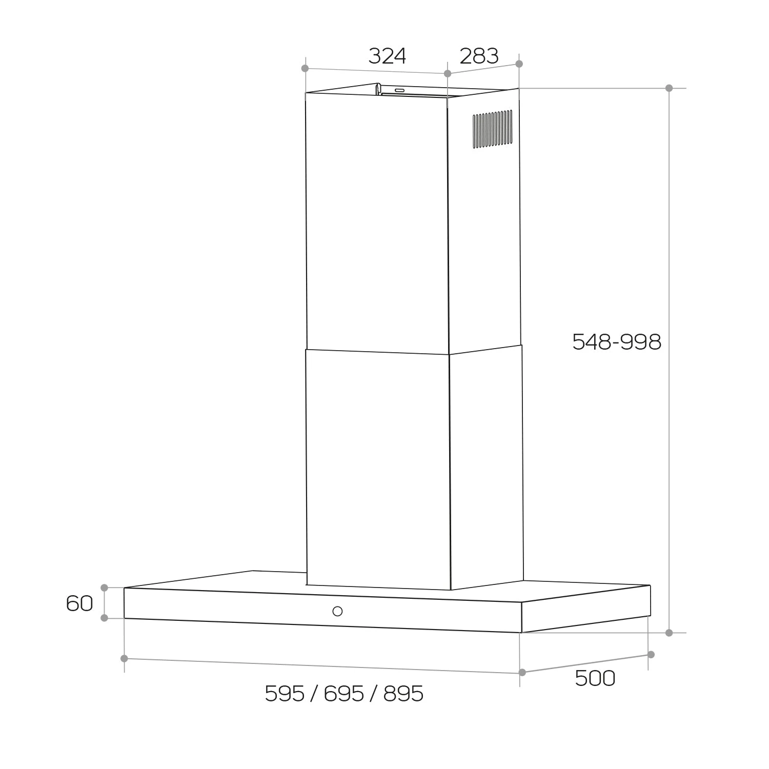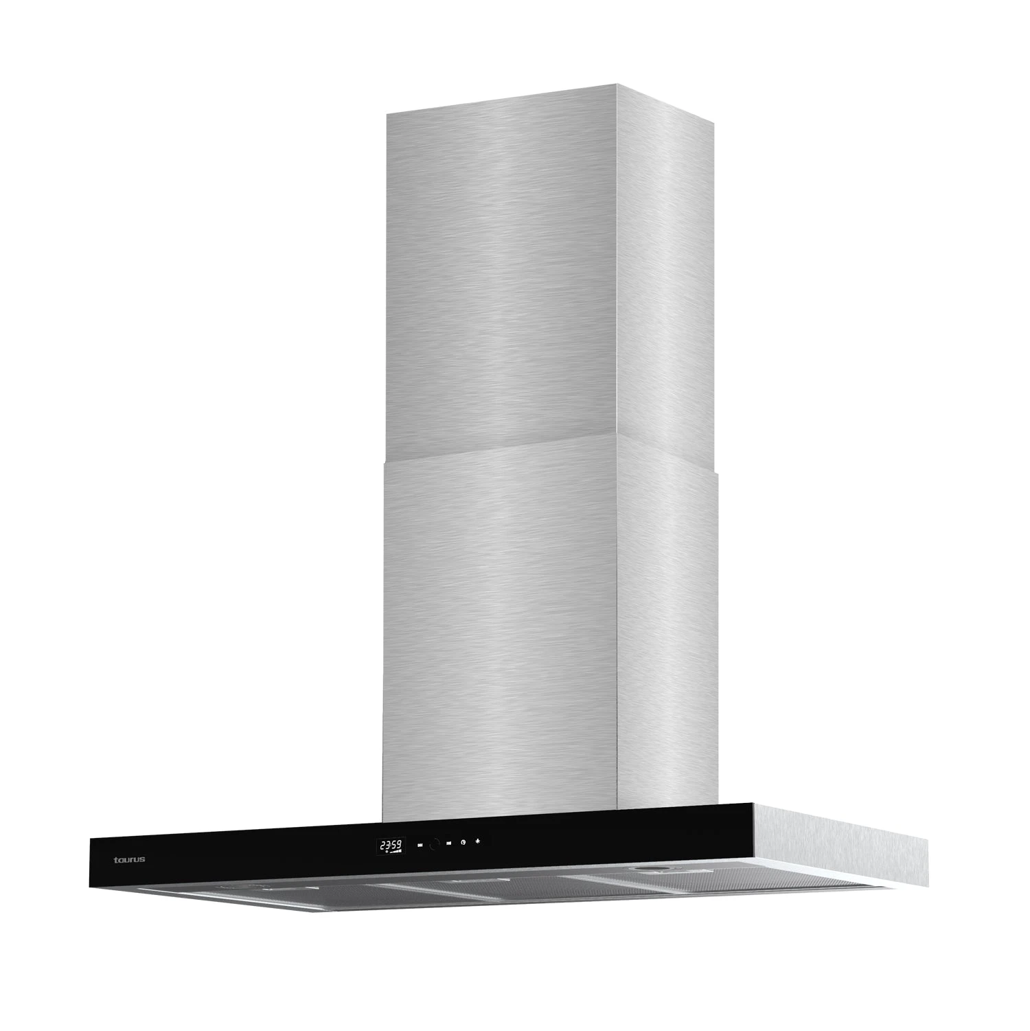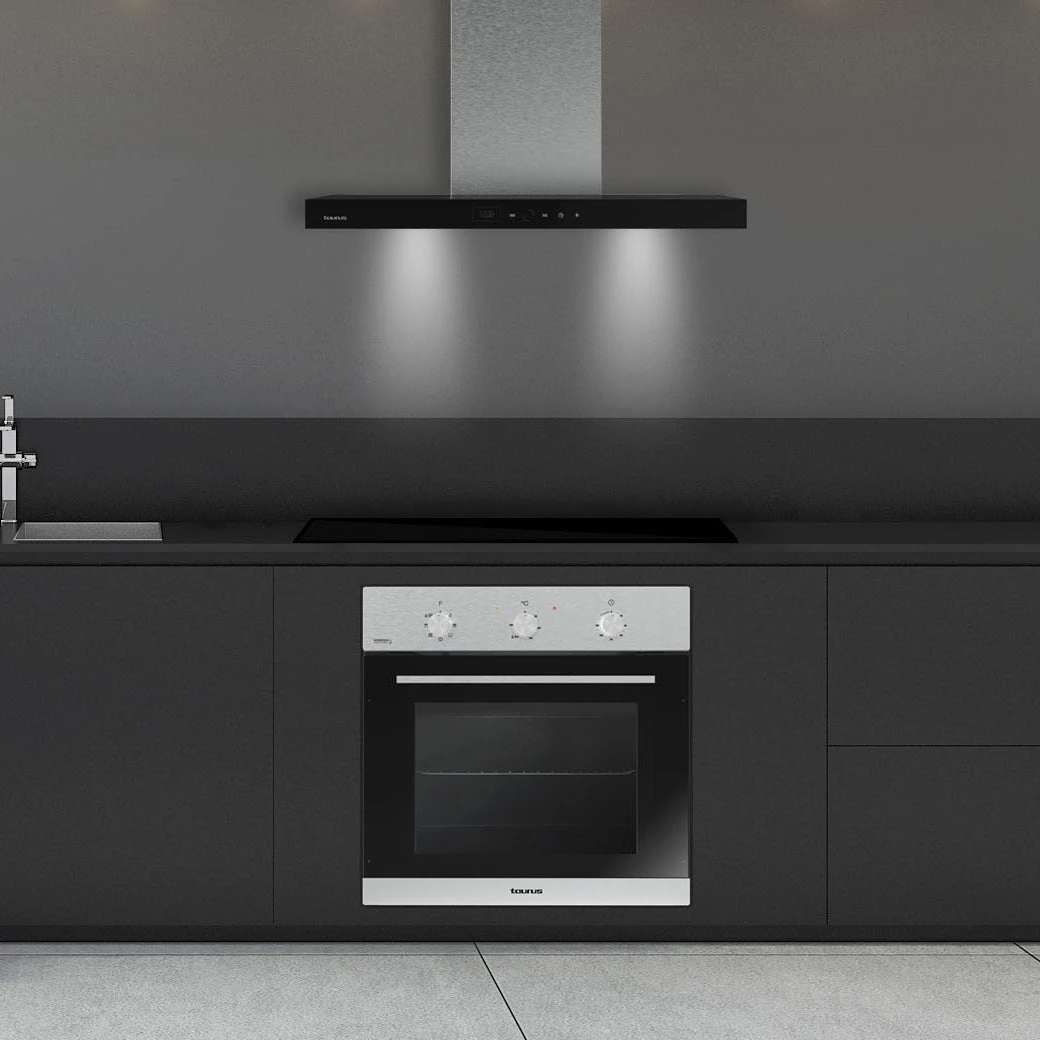 Campana extractora decorativa en acero inoxidable con frontal de cristal negro y control táctil. Elegante para cualquier cocina e ideal para ser vista, con unos acabado selectos y con una óptima y elevada capacidad de extracción de 650 m3/h. Atrapa rápidamente humos y olores. Disponible en varias medidas de ancho: 60 y 90 cm. La campana T90IXAL es de 90 cm de ancho.