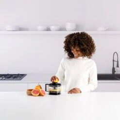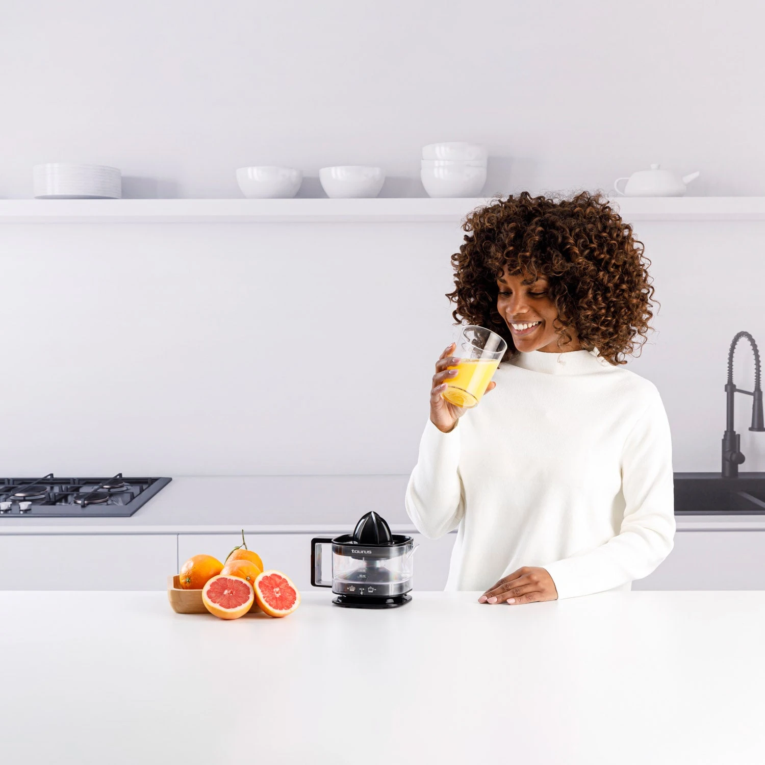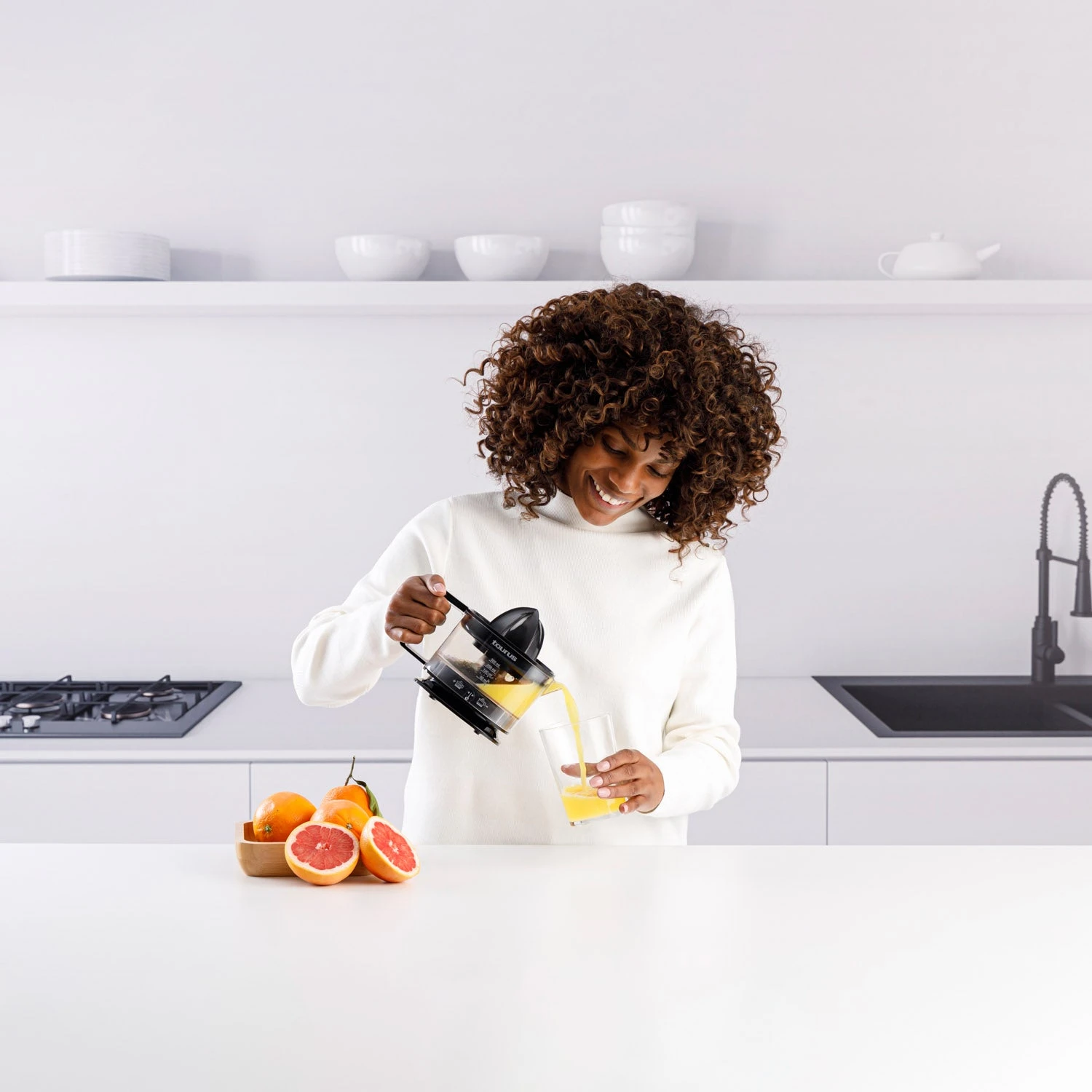 Exprimidor con filtro regulador de pulpa que permite personalizar el nivel de pulpa de tu zumo. Gira el cuerpo del exprimidor y colócalo en una de sus 5 posiciones distintas que te permitirán obtener un zumo con más o menos pulpa, ¡incluso sin nada!