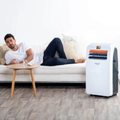 Climatizador portátil 4 en 1, consigue el ambiente más óptimo al instante. Aire acondicionado, calefacción, deshumidificador y ventilador. Apto para habitaciones de hasta 35m2.