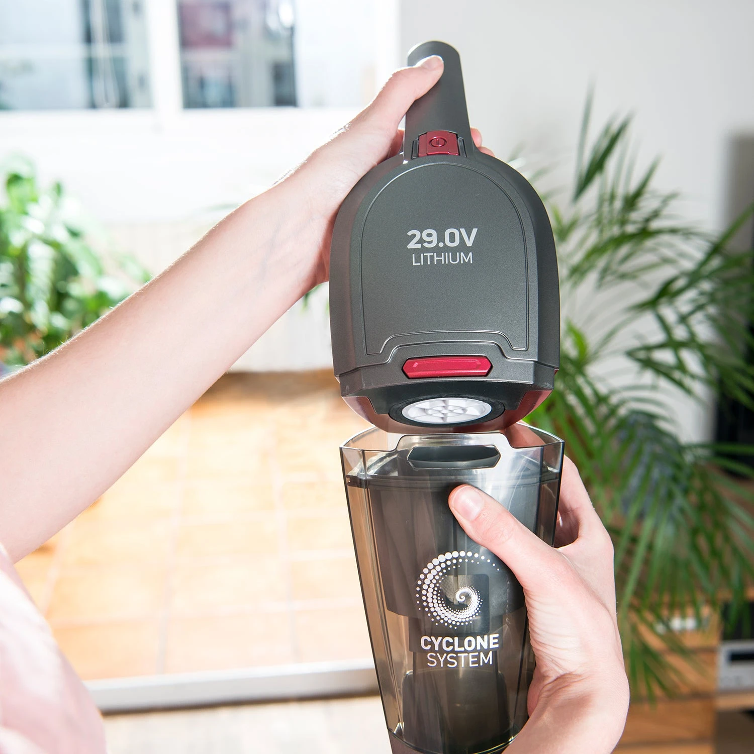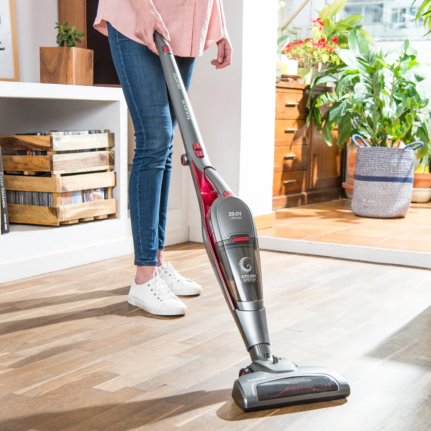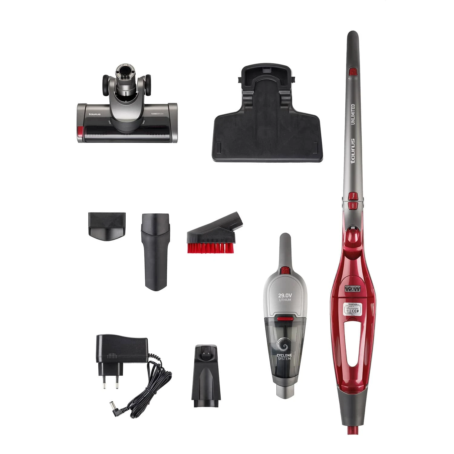 El aspirador escoba sin cable Unlimited 29.0 Lithium de Taurus ofrece 29.6V de potencia y hasta 55 minutos de autonomía. Con diseño 2 en 1, funciona como aspirador de suelos y de mano. Incluye cepillo Turbo Brush con iluminación LED, filtración ciclónica y depósito extraíble de 0,7L. Su posición parking, mango plegable y base de carga garantizan practicidad. Ideal para limpiar todo tipo de superficies, muebles y rincones difíciles de forma rápida y eficiente.